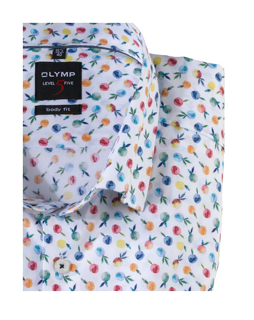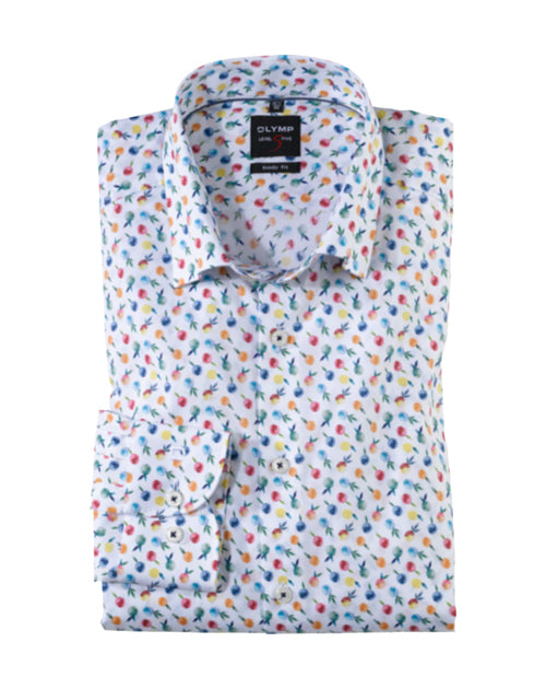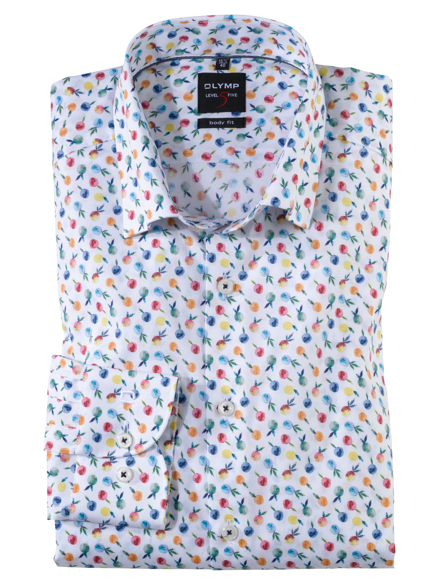Eine besonders moderne Verhandlungstaktik verfolgen Männer im OLYMP mit diesem Modell der Linie OLYMP Level Five. Das hochwertige Popeline-Hemd mit mehrfarbigem Früchtedruck bringt frischen Wind in den Geschäftsalltag und erfüllt zugleich alle Ansprüche an ein einwandfreies Businesshemd. Der sportlich elegante Under-Button-down-Kragen harmoniert optimal mit dem körperbetonenden Body Fit, bequemer Comfort Stretch sorgt für uneingeschränkte Bewegungsfreiheit. Ein Business-Begleiter für alle, die gerne mit persönlicher Note überzeugen!97 % Baumwolle, 3 % Elastolefin