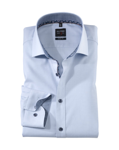 Die Linie OLYMP Level Five steht für ein besonders jugendliches und modebewusstes Business-Konzept. In diesem Sinne präsentiert sich dieses OLYMP Level Five body fit Hemd in körpernaher Body-Fit-Schnittführung, mit Besätzen aus bedrucktem Dobby und sportiven Kontrastknöpfen. Die elegante zweifarbige Fadenführung sichert den geschäftlichen Dresscode, stilsicher flankiert durch einen edlen Royal-Kent-Kragen. Der hochwertige Comfort Stretch kommt aktionsbereiten Männern im OLYMP optimal entgegen und liegt dank Baumwollqualität ausgesprochen angenehm auf der Haut. Für mehr Authentizität im Office-Alltag!97 % Baumwolle, 3 % Elastolefin
