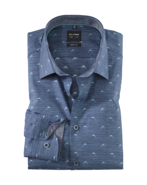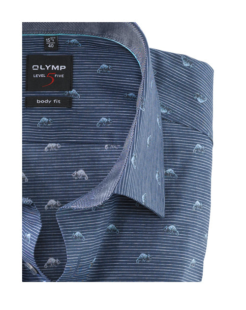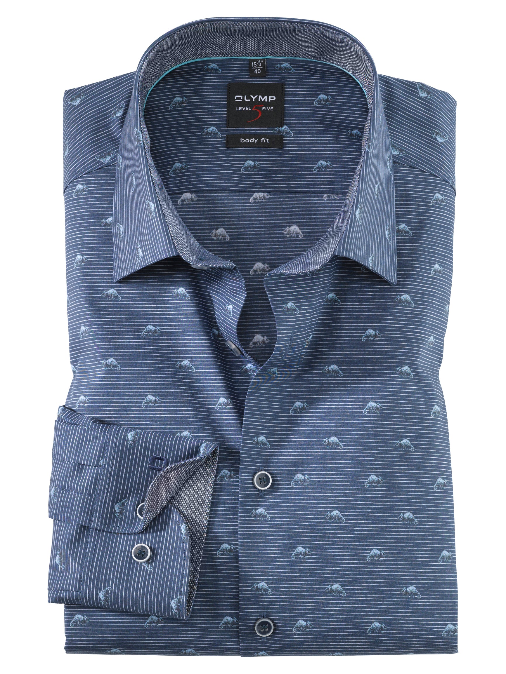 Eine besonders trendige Inszenierung gelingt Männern im OLYMP in diesem OLYMP Level Five body fit Hemd: Das business-typische Linienmotiv wird durch den modischen Tier-Print elegant gebrochen. Trotz des exzentrischen Dessins sprechen die feine Popeline-Qualität, der körpernahe Body Fit und die hochwertigen Verarbeitungsdetails ganz klar die Sprache der Business-Welt, wodurch das Modell auch am modernen Konferenztisch tadellos funktioniert. Ein jugendlicher New-York-Kent-Kragen folgt der zielstrebigen Linie und rundet den Look stilecht ab.97 % Baumwolle, 3 % Elastolefin