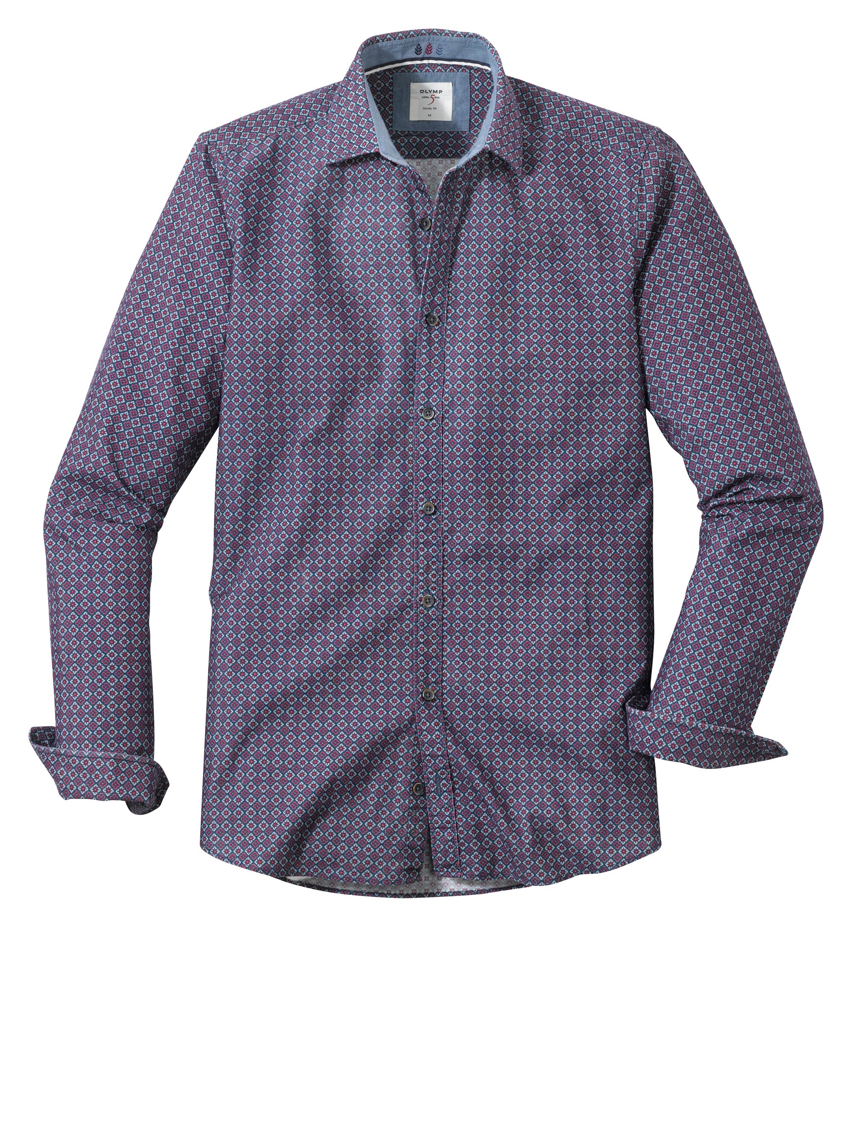 Die Linie OLYMP Level Five Casual body fit steht für eine Vielzahl an spannenden Farbstellungen und Dessins. Dieses einzigartige Grafik-Dessin präsentiert sich mit Farbenfreude und Charme. Feiner Cord in knitterfreier und besonders hautsympathischer Verarbeitung lässt die körpernahe Passform angenehm spüren und unterstreicht das energievolle Freizeitgefühl. Ein smarte Kent, kontrastiert durch den attraktiven Besatz in Fake-Denim, sorgt bei aller Lässigkeit für gehobenen Stil und ein modisch-maskulines Statement.100 % Baumwolle