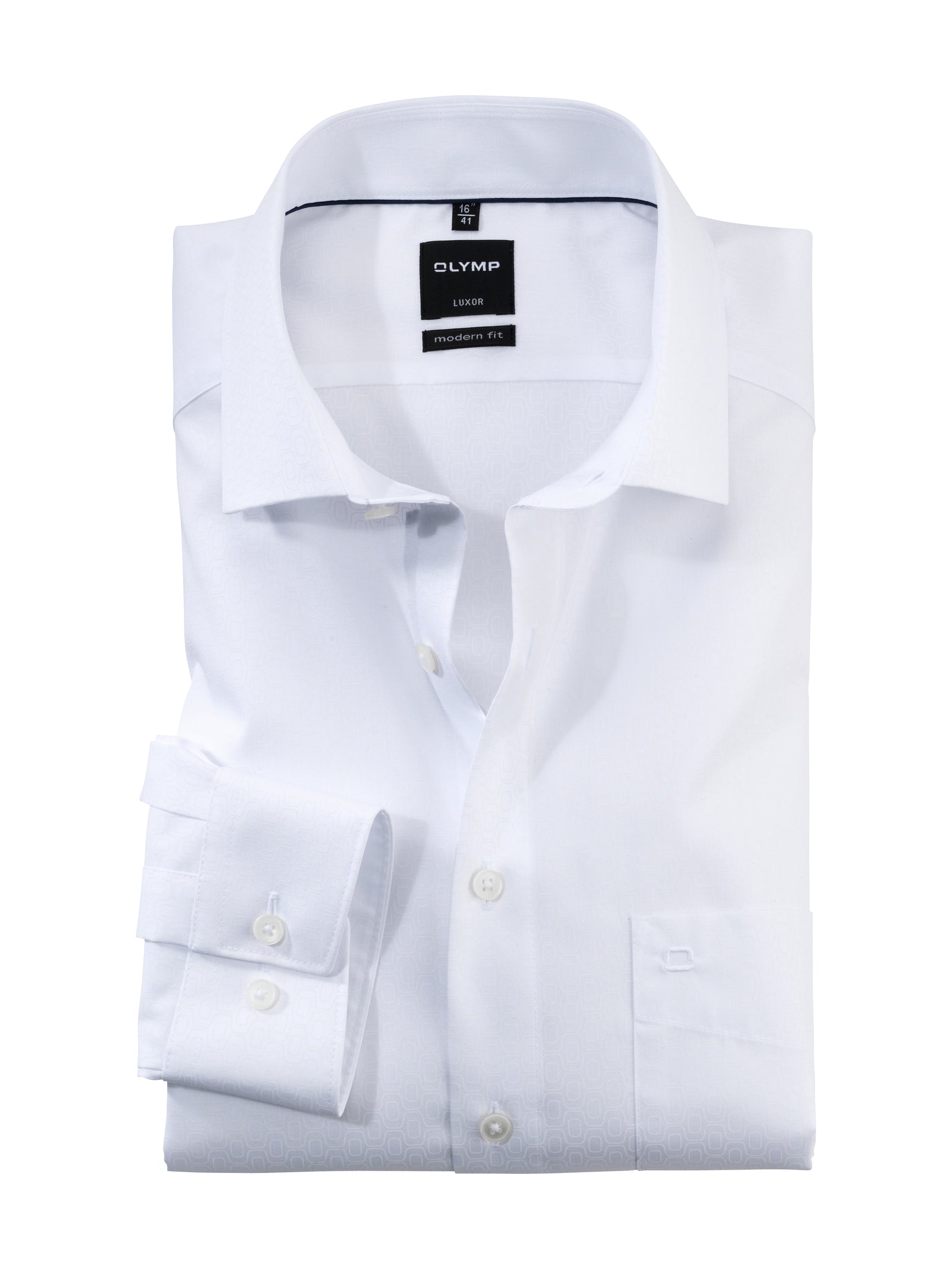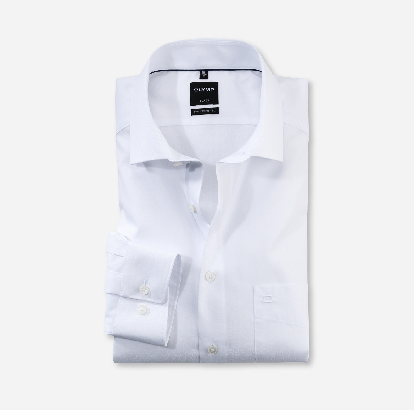 Ein edles modisches Statement mit distinguiertem 70s Appeal und Dresscode-Farben Weiß und Marineblau – dieses unifarbige OLYMP Luxor modern fit präsentiert sich in körpernaher Silhouette, kosmopolitischem Global Kent und leicht changierendem tonalen Webmuster. Die feinen Baumwollgarne sorgen mit exzellenten Glättewerten für ein ausnehmend gutes Tragegefühl gerade bei sommerlichen Temperaturen, außerdem garantieren sie zeitsparende Pflegeleichtigkeit und Bügelfreiheit.100% Baumwolle