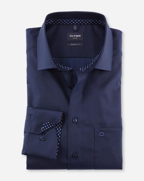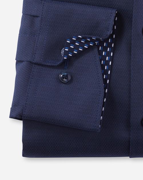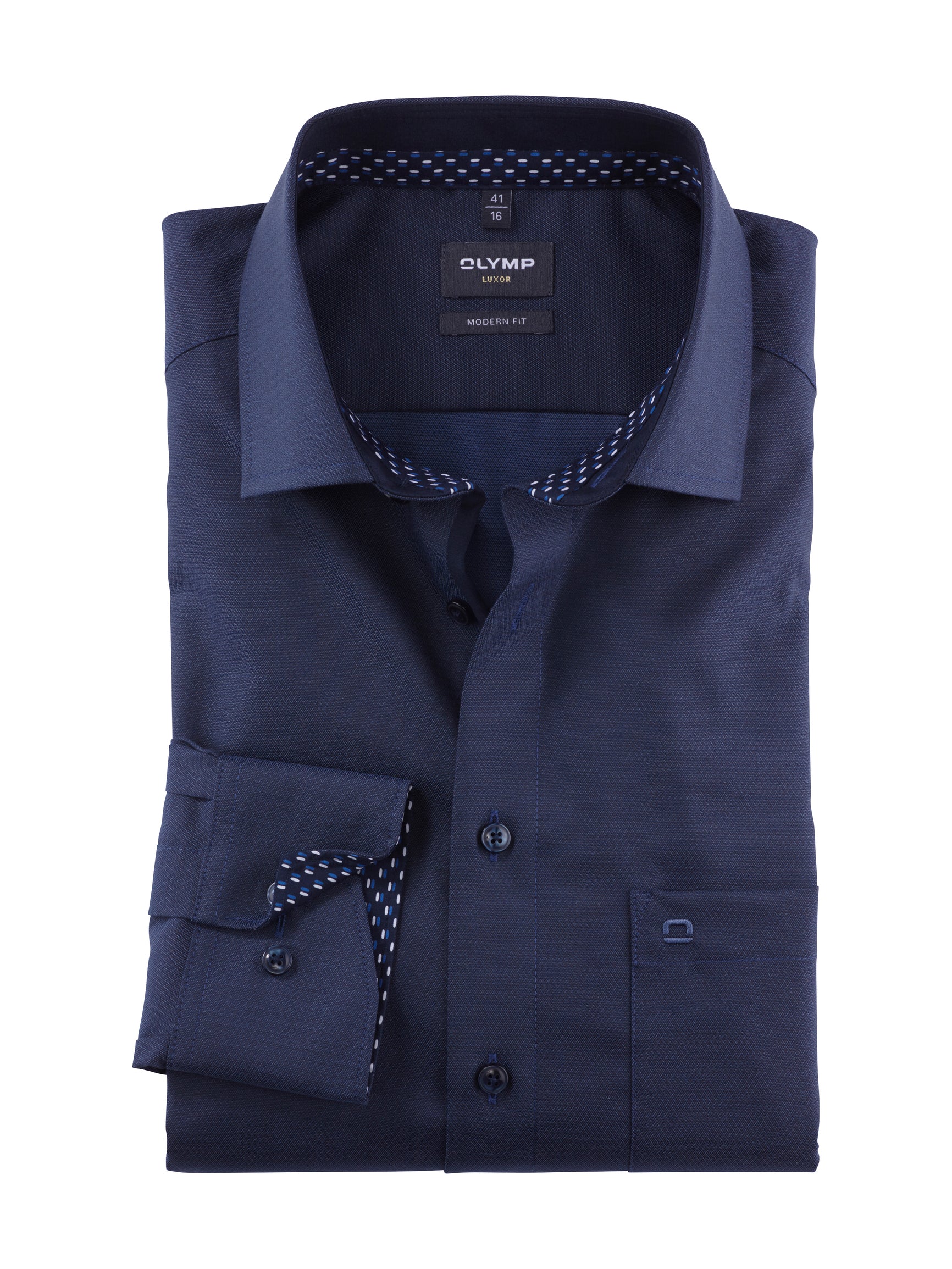 Mehr Souveränität durch faltenfreien Auftritt: Das exklusive Businesshemd der Linie OLYMP Luxor modern fit mit grenzenloser Bügel- und Knitterfreiheit. Auch bei hitzigen Debatten angenehmer Tragekomfort dank atmungsaktiver und hautsympathischer Stoffe. Der Oberstoff überzeugt mit Jacquardmusterung in Marine und nicht zuletzt machen der New-Kent-Kragen und weitenverstellbare Kombimanschetten OLYMP Luxor zum idealen Geschäftspartner. Business im OLYMP.100% Baumwolle