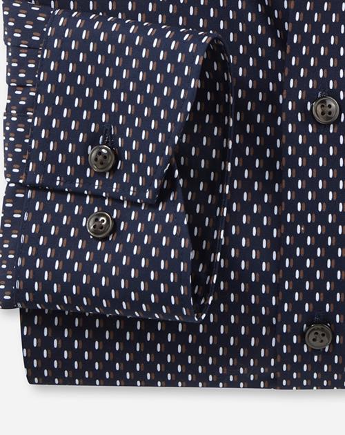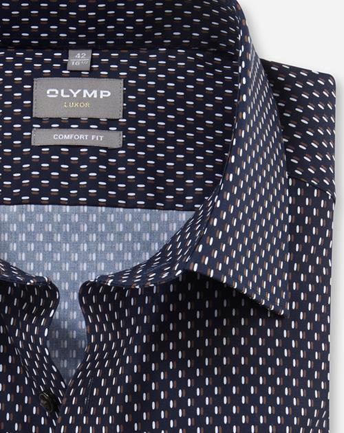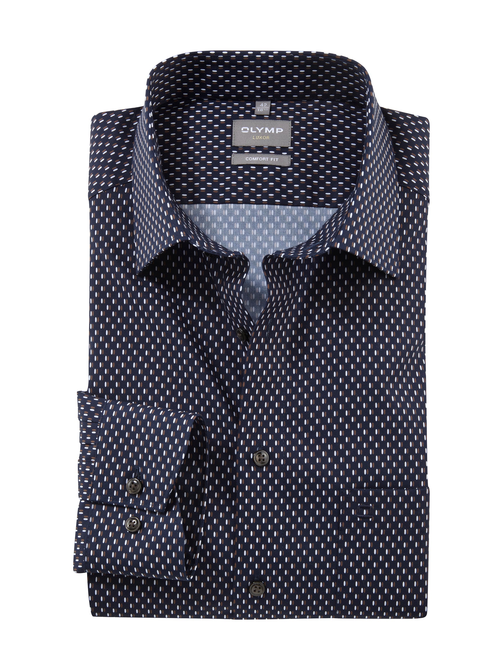 Das raffinierte Micro-Print-Dessin mit Akzent auf Braun wirkt sportlich und elegant zugleich. Aus reiner hautsympathischer Baumwolle gewebt, punktet es mit Formbeständigkeit und Atmungsaktivität. Die angenehme Textur dieses OLYMP Luxor Hemdes überzeugt mit hervorragenden Glättewerten und ist bügel- und pflegeleicht. Der smarte New Kent vollendet die geradlinige Silhouette harmonisch und sorgt für den stilvollen, seriösen Look.100% Baumwolle