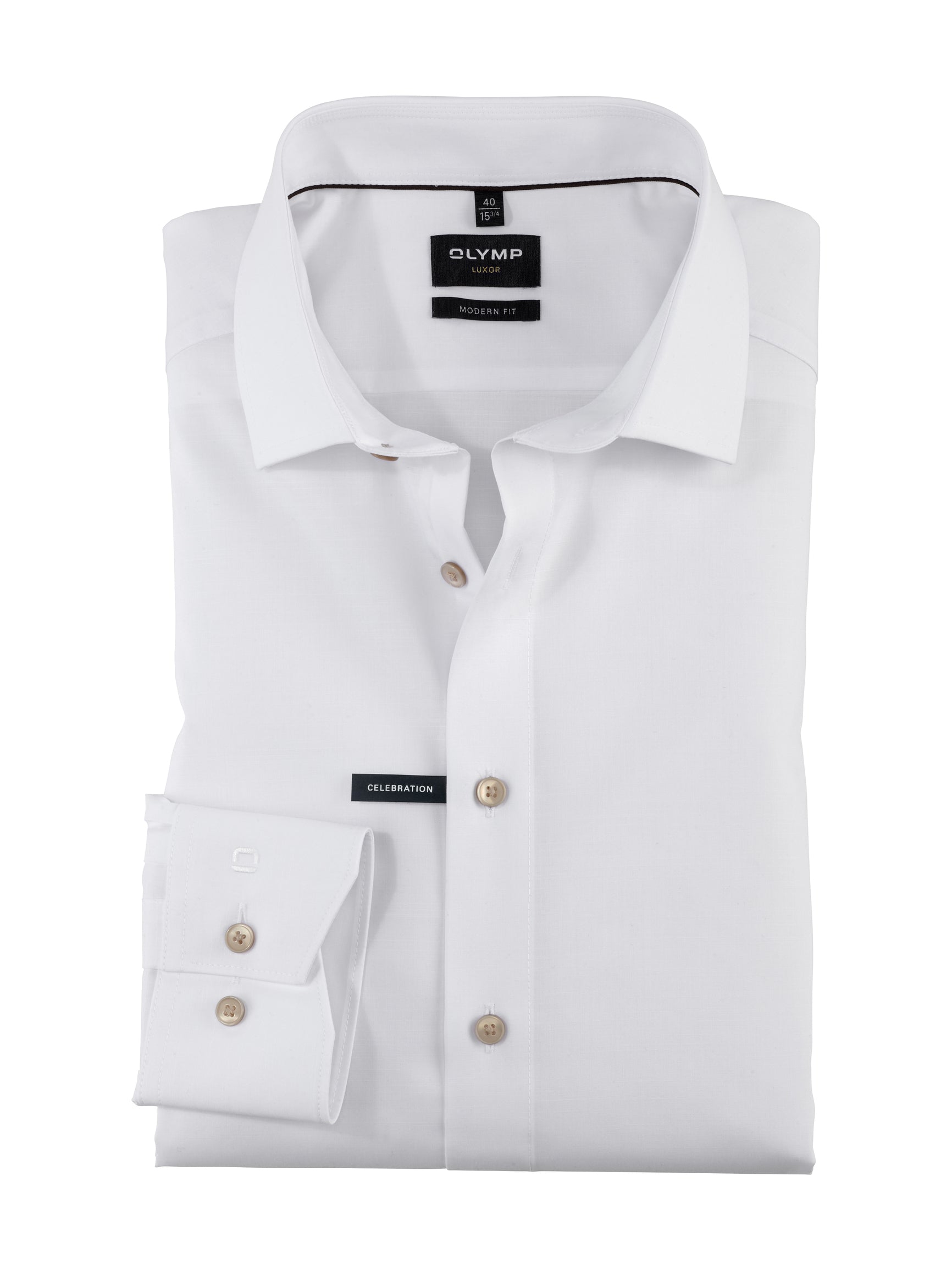 Festliche OLYMP Luxor Hemden von gepflegter Eleganz unterstreichen den Look für den speziellen Tag auf ganz besondere Weise. Besonders feine Garnausspinnungen zeigen sich in leichter und edler Struktur. Die moderne Kragenform Global Kent harmoniert hervorragend zum attraktiven körpernahen Modern Fit. Mit etwas längerem Arm. Pflegeleicht und bügelfrei.100 % Baumwolle
