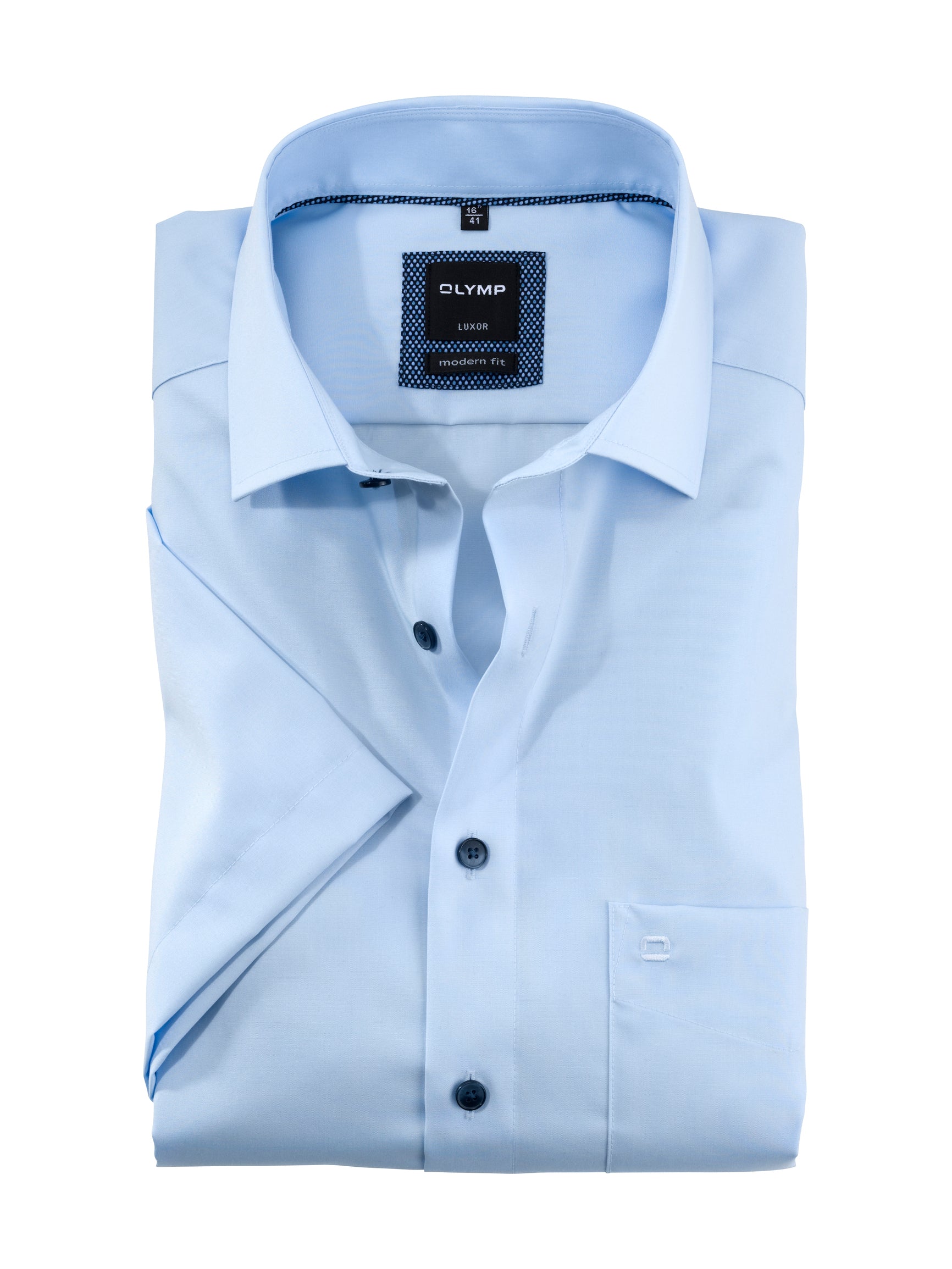Die Mischung aus Klassikern und Musterunterbrechern in der Business-Garderobe des modebewussten Gentleman hält das richtige Hemd zum richtigen Anlass bereit. Weiß, Kobalt und Blau sind standesgemäße Dresscode-Farben und lassen sich folgerichtig dann einsetzen, wenn formale Looks nötig sind. Die reine BCI-zertifizierte Baumwolle dieses OLYMP Luxor modern fit Kurzarmhemd in angenehm glatter Webstruktur macht auch sommerliche Temperaturen im Office erträglich und sorgt für einen kühlen Kopf in heißen Meetings. Ein körpernaher sportiver Schnitt und der kosmopolitische Global Kent mit kontrastivem Trim vollenden die Performance elegant.100% Baumwolle