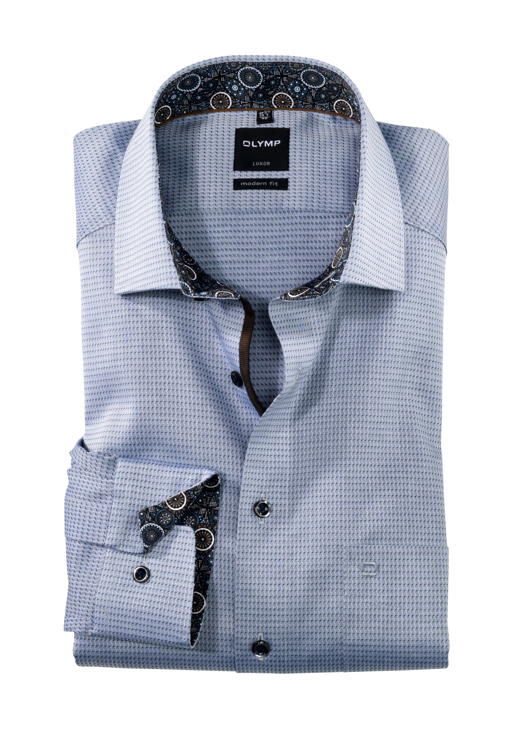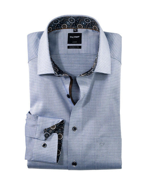 Kein Knitter-Look trotz langer Bürozeiten: Das bügelfreie Businesshemd der Linie OLYMP Luxor modern fit aus 100% Baumwolle überzeugt im Arbeitsalltag durch eine knitterfreie Optik und hinterlässt auch auf der anschließenden After-Work-Party noch einen makellosen Eindruck. Der Oberstoff mit elegant eingewebtem Muster in Marine harmoniert hervorragend mit dem floralen Besatz am Krageninnensteg und den Innenmanschetten. Der elegante Global-Kent-Kragen, die kontrastierten Knöpfe und weitenverstellbare Kombimanschetten verleihen einen Hauch von Extravaganz. Und das Beste daran ist: Lästiges bügeln entfällt.100 % Baumwolle