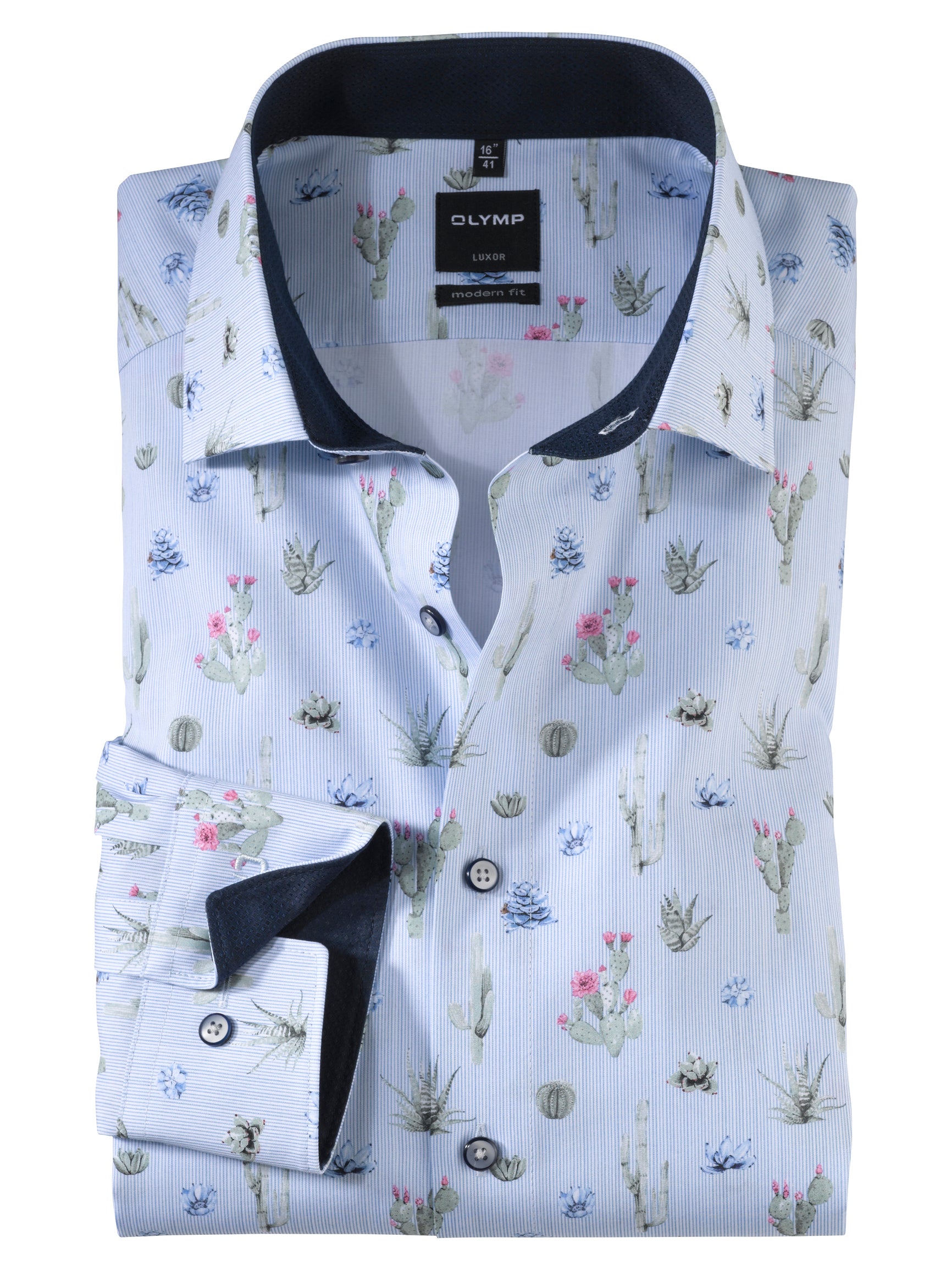Die Kombination klassischer Dessins mit kreativen Print-Motiven schenkt den OLYMP Luxor modern fit Businesshemden den individuellen Look. Für höchste Funktionalität sorgt die spezielle Verarbeitung der reinen Baumwolle, lästiges Bügeln ist ersatzlos gestrichen. Waschen, trocknen, anziehen! – lautet die Devise, die besonders auf Geschäftsreisen punktet. Der modische Global Kent und attraktiver Strukturbesatz im Kragen vollenden dieses Hemd mit zeitgemäßer Note.100 % Baumwolle