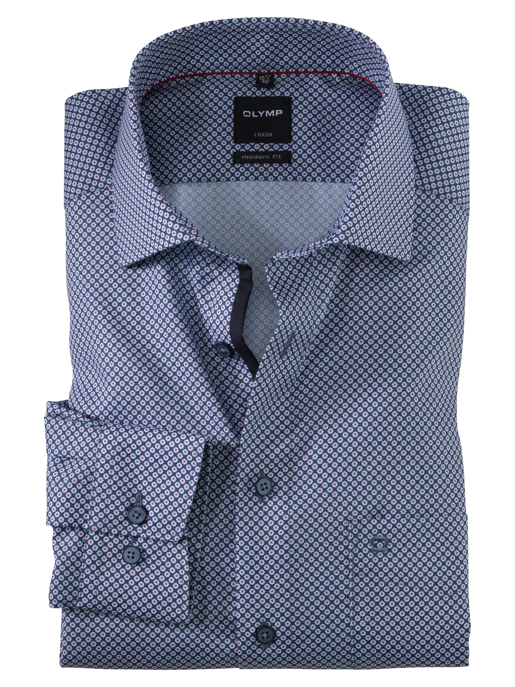 Grafische Minimal-Dessins und ästhetisch herausgearbeitete Detaillösungen machen das OLYMP Luxor modern fit Businesshemd zum hochgeschätzten Geschäftspartner. Erstklassige Baumwollfasern und langjährige Verarbeitungsexpertise garantieren ein atmungsaktives und hautsympathisches Trageerlebnis, das obendrein durch Pflegeleichtigkeit und Bügelfreiheit funktional punktet. Der kontrastierende Besatz an der Innenseite des Kragens sowie ein Global Kent runden das exklusive Gesamtbild ab.100 % Baumwolle