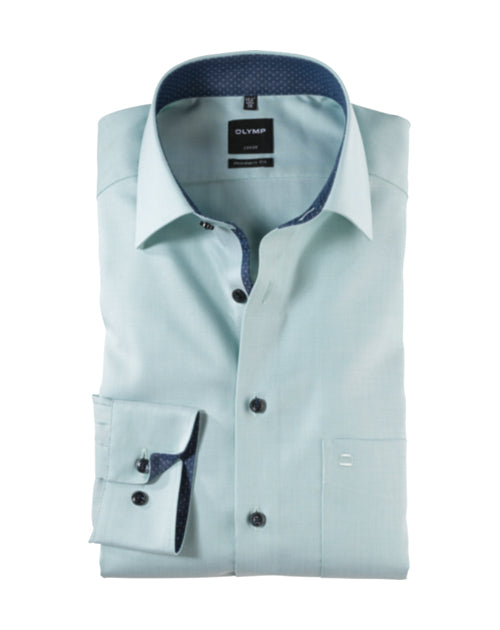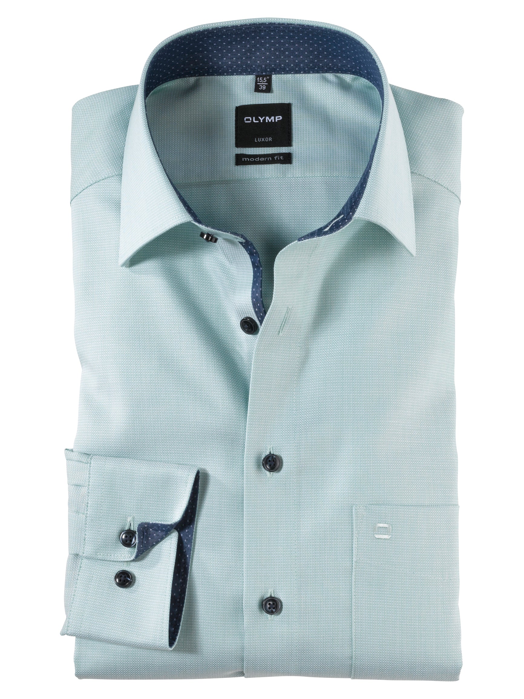 Einfach waschen, trocknen, anziehen! Das OLYMP Luxor modern fit Businesshemd aus 100% Baumwolle sorgt in wirklich jeder Situation für Knitterfreiheit und körpernahe Passform. Die feine Gitterstruktur des Oberstoffes präsentiert sich wirkungsvoll mit kontrastierendem Dobby-Besatz an den Innenseiten von Kragen und Manschetten. Ein eleganter New Kent vollendet den maskulinen Business-Look. Die atmungsaktive und hautsympathische Textur begeistert durch höchsten Tragekomfort.100 % Baumwolle