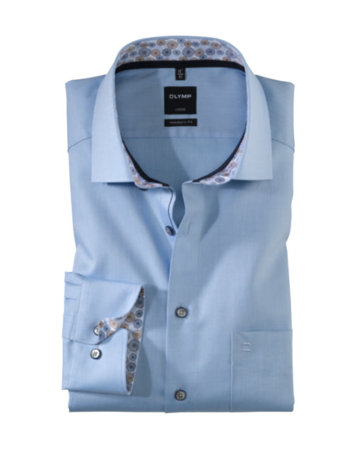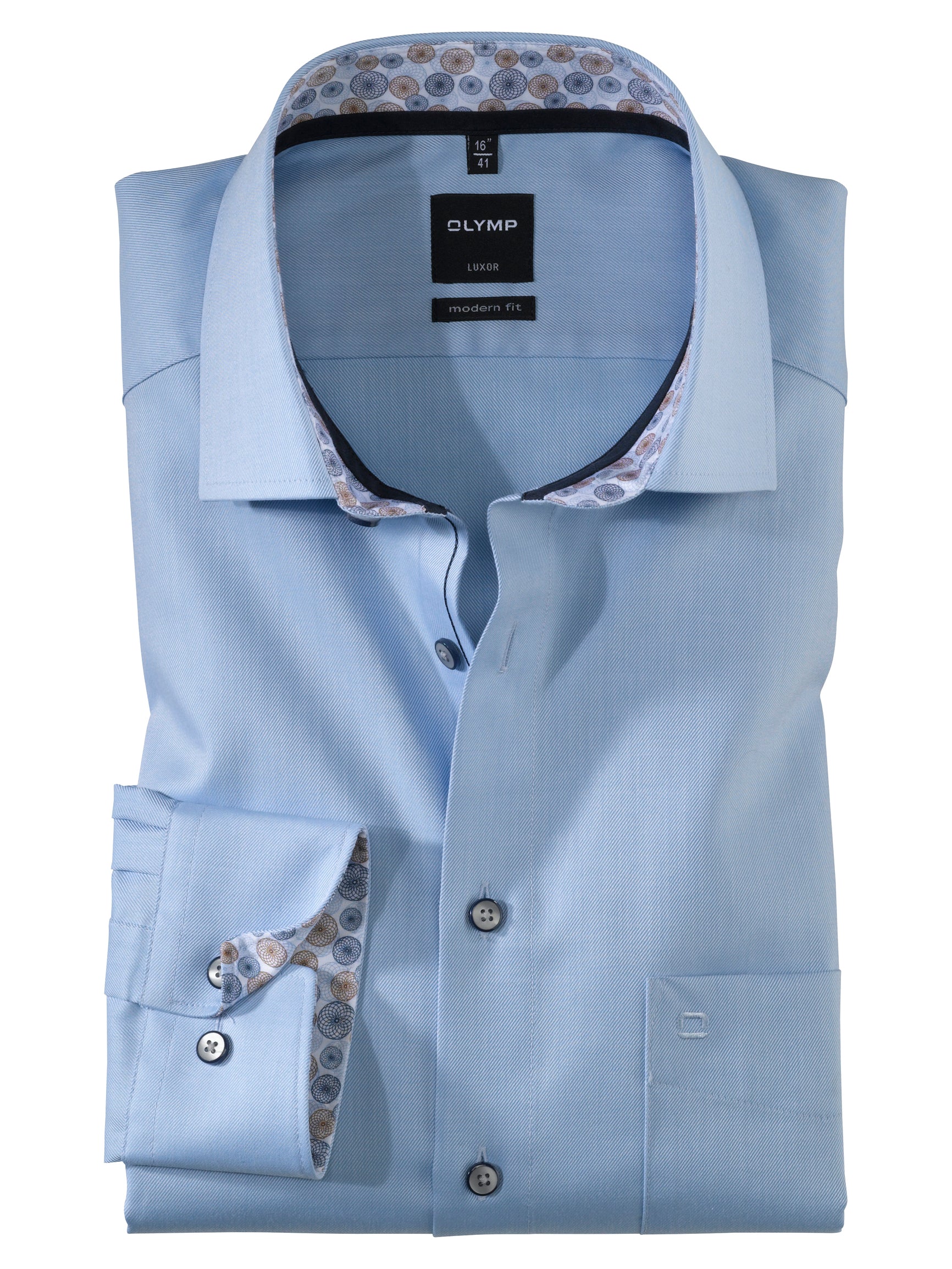 Im Business spielt der korrekte Dresscode nach wie vor eine wichtige Rolle. OLYMP Luxor modern fit Businesshemden aus reiner Baumwolle in Uni-Farbgebung bestechen durch eine topaktuelle Linie und hochwertige Verarbeitungsqualität. Die reinen Baumwollstoffe präsentieren sich atmungsaktiv, hautsympathisch und knitterfrei. In feiner Twill-Struktur gewebt, vollendet ein Global-Kent-Kragen sowie der attraktive Print- und Uni-Besatz an den Innenseiten von Kragen und Manschetten den erstklassigen Look.100 % Baumwolle