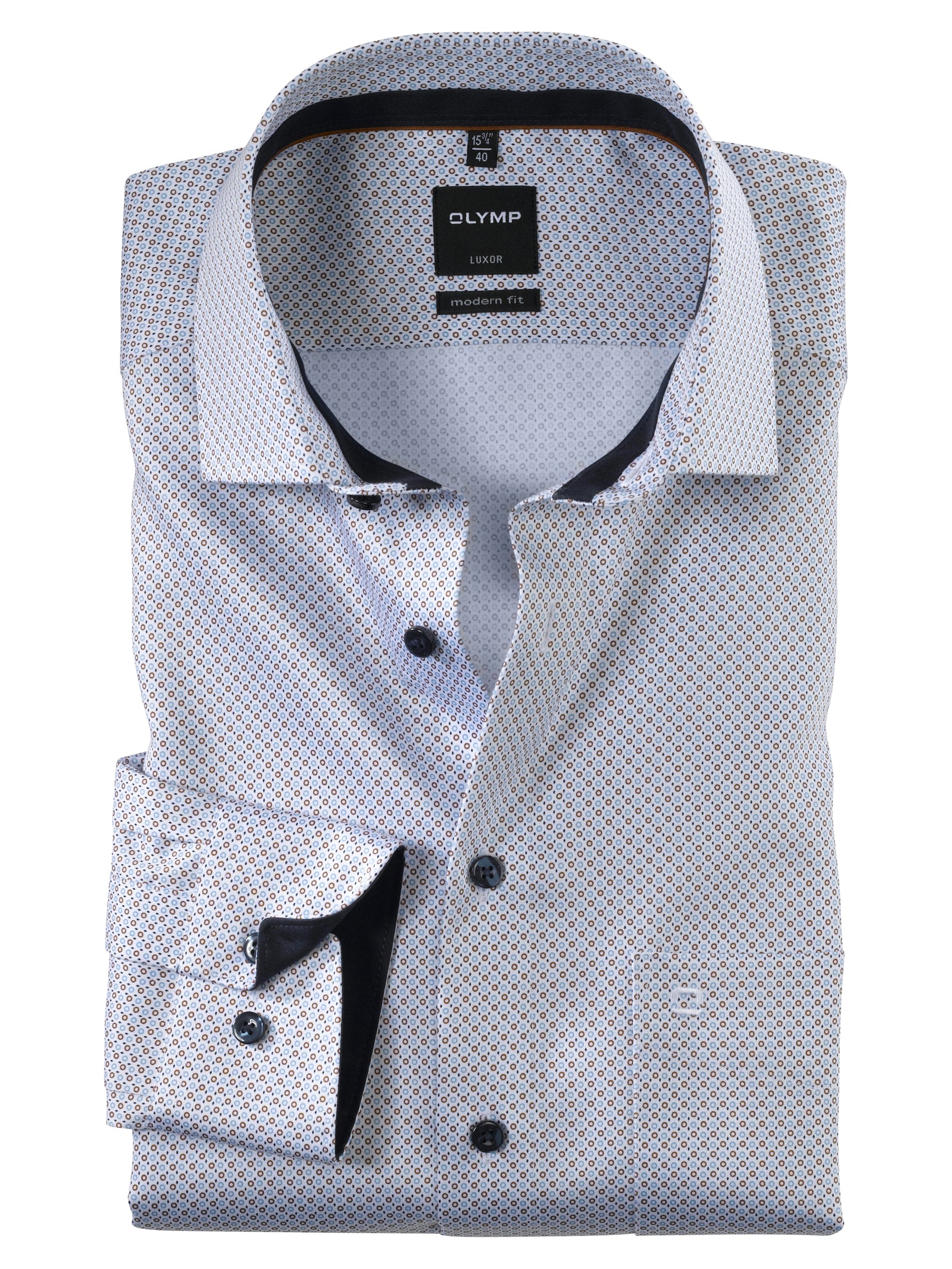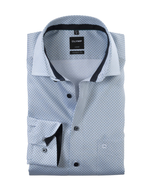 Die einfallsreichen Farb- und Musterkombinationen des grafischen Dessins machen dieses OLYMP Luxor modern fit Businesshemd zum hervorragenden Kombinierer mit individuellem Touch. Erstklassige Baumwollfasern und langjähriges Hersteller-Know-how garantieren ein atmungsaktives und hautsympathisches Trageerlebnis, das obendrein durch Knitter- und Bügelfreiheit funktional punktet. Der weltoffene Global Kent spielt hervorragend mit der modischen, leicht taillierten Silhouette zusammen.100 % Baumwolle