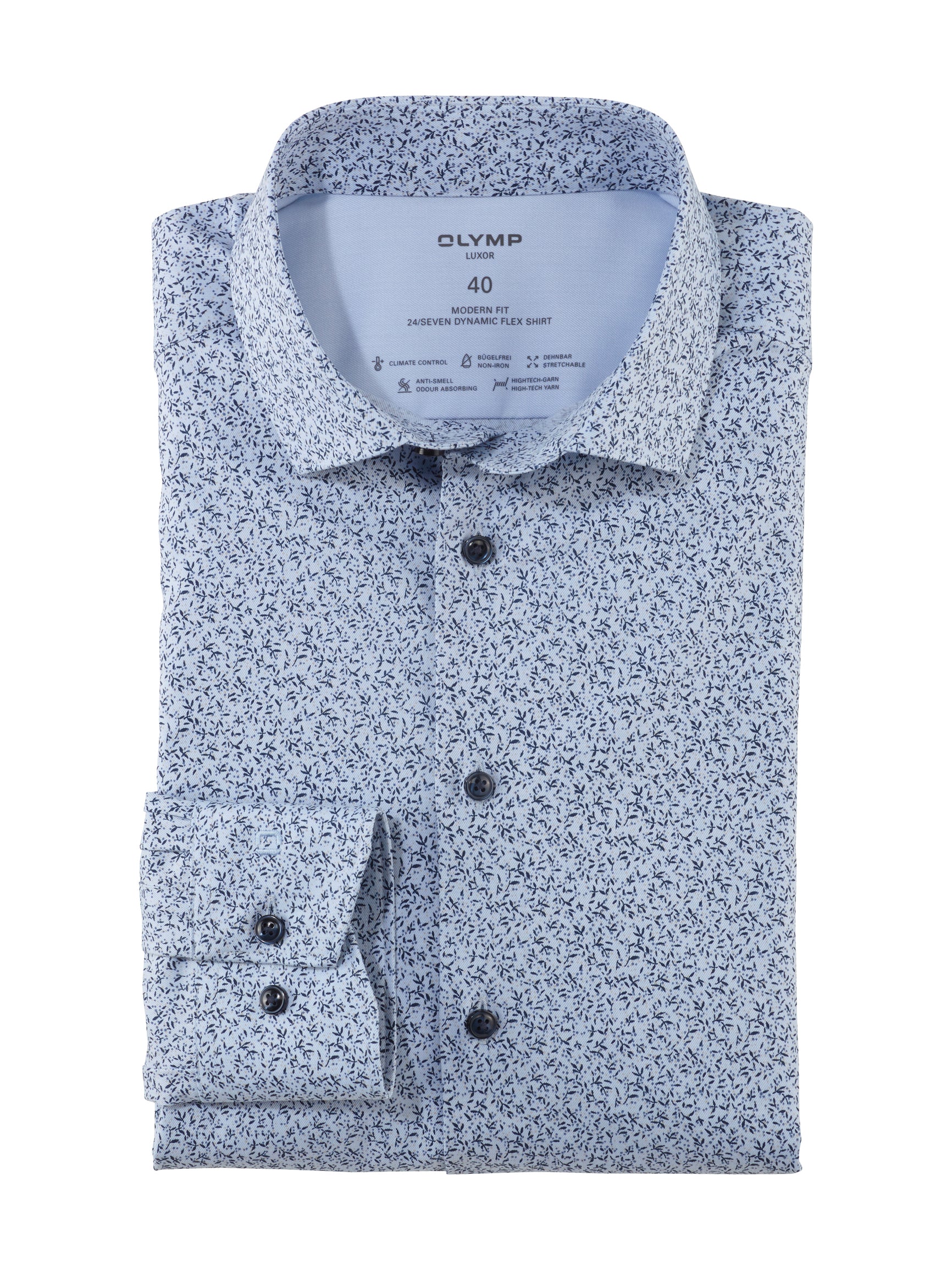 Das exklusive Businesshemd der Linie OLYMP Luxor modern fit in dezent changierender Struktur bietet grenzenlose Einsatzmöglichkeiten. Dezent und elegant zugleich, lässt es sich in jeden stilvollen Business-Look integrieren. Atmungsaktive, hautsympathische Baumwollfasern sorgen für angenehmen Tragekomfort und schenken durch Bügel- und Knitterfreiheit puren Zeitgewinn. Ein weltoffener Global-Kent-Kragen mit kontrastivem Print-Besatz und die leicht taillierte Passform sorgen für ein selbstvewusstes und modisches Statement.100 % Baumwolle