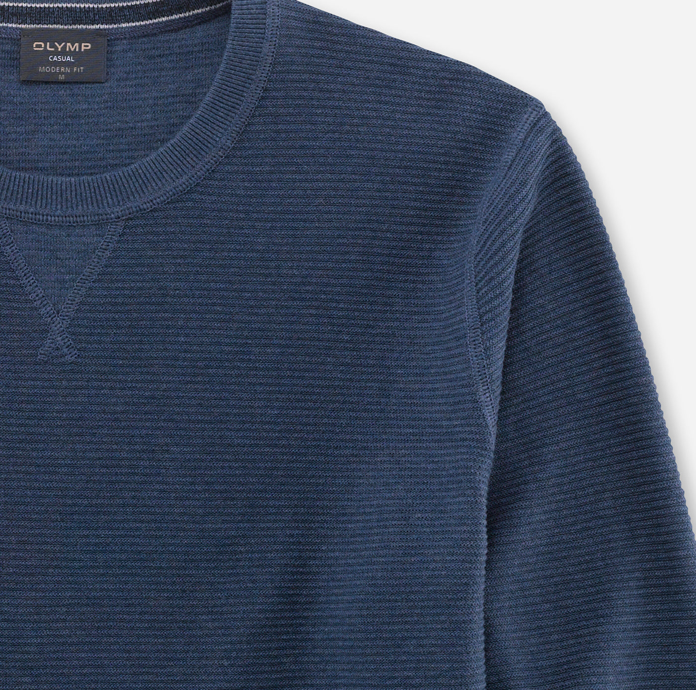 Auch im Casual-Bereich top gekleidet ist der Träger dieses Rundhalspullovers der aktuellen OLYMP Strick Kollektion. Verarbeitet wurde eine hochwertige Baumwollqualität auf GREEN CHOICE Niveau, modisch und trendaktuell als markanter Strukturstrick. Der maskulin taillierte Modern Fit passt optimal in einen lässigen Freizeitstil und gewährt mit seinen Strickbündchen besten Sitz in allen Lebenslagen. Ein vielseitiger Allrounder für Style und Statement im Casual-Bereich, erhältlich in diversen klassischen sowie saisonalen Farbvarianten.