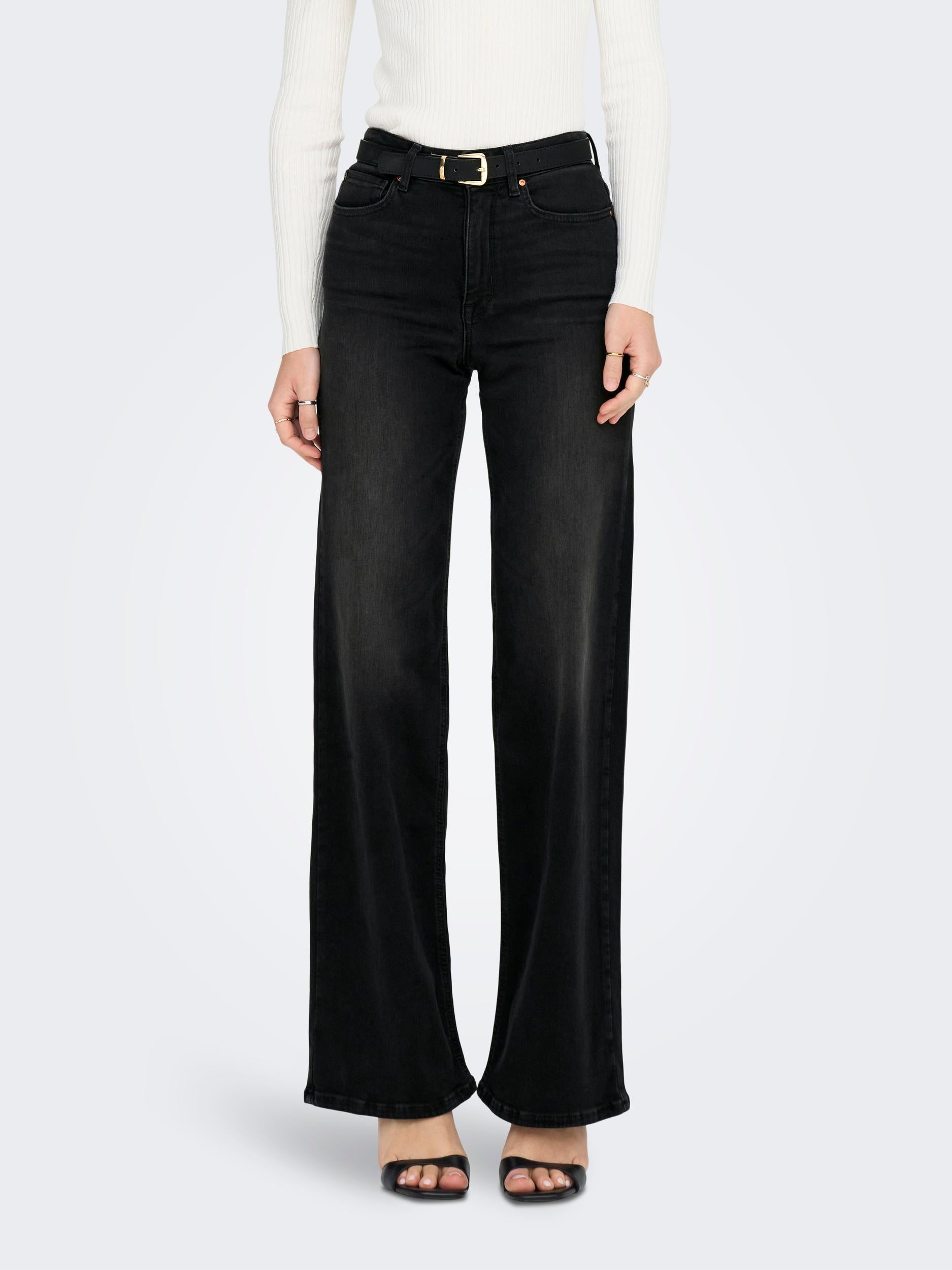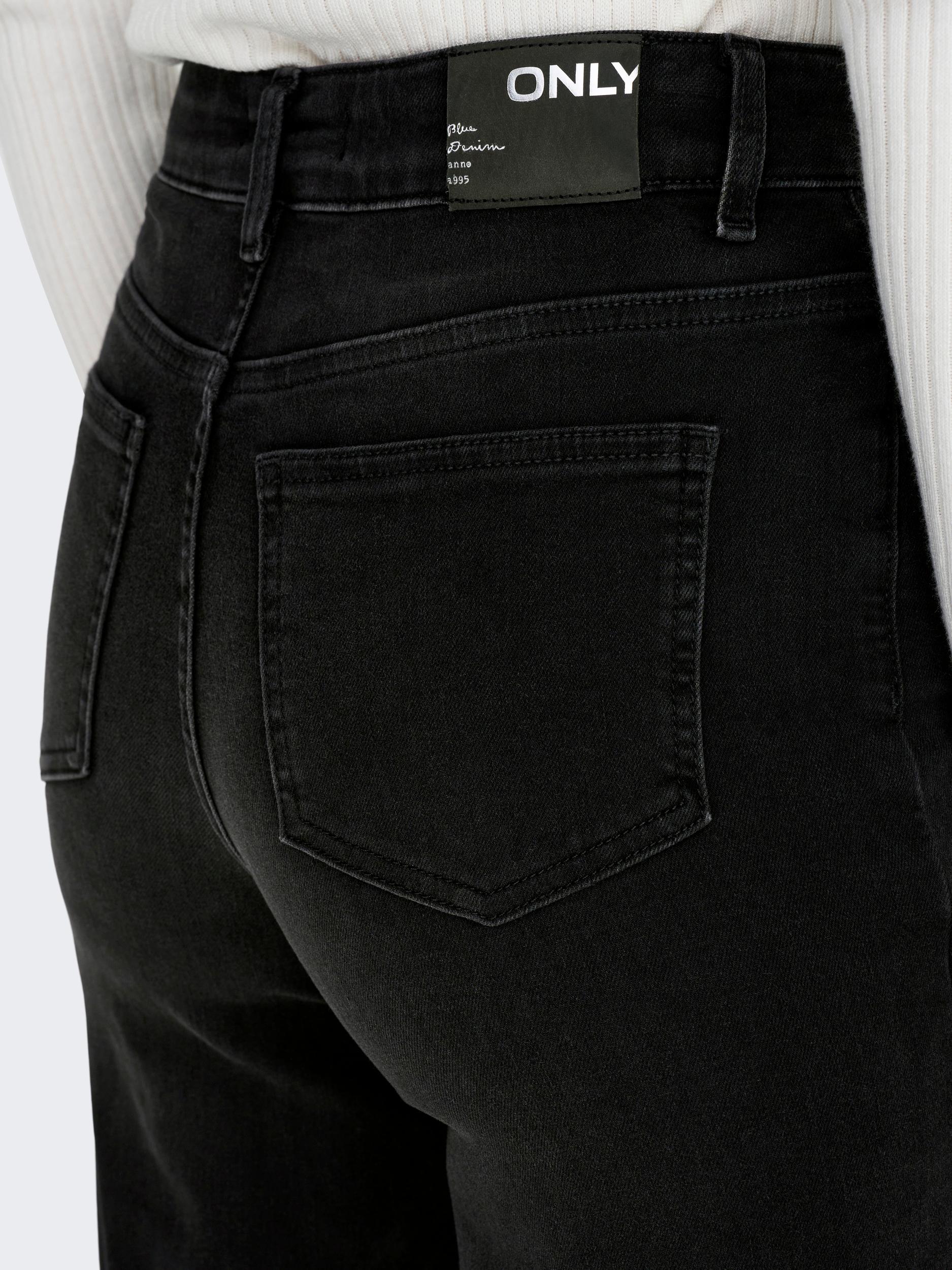 - Jeans mit hoher Taille- Weite Beinform- 5 Gürtelschlaufen- Knopfverschluss- 5 Taschen- Einfarbig- Schritthöhe: 86 cm in Größe S/34- Das Model trägt Größe S/3482% Baumwolle, 16% Polyester, 2% Elasthan