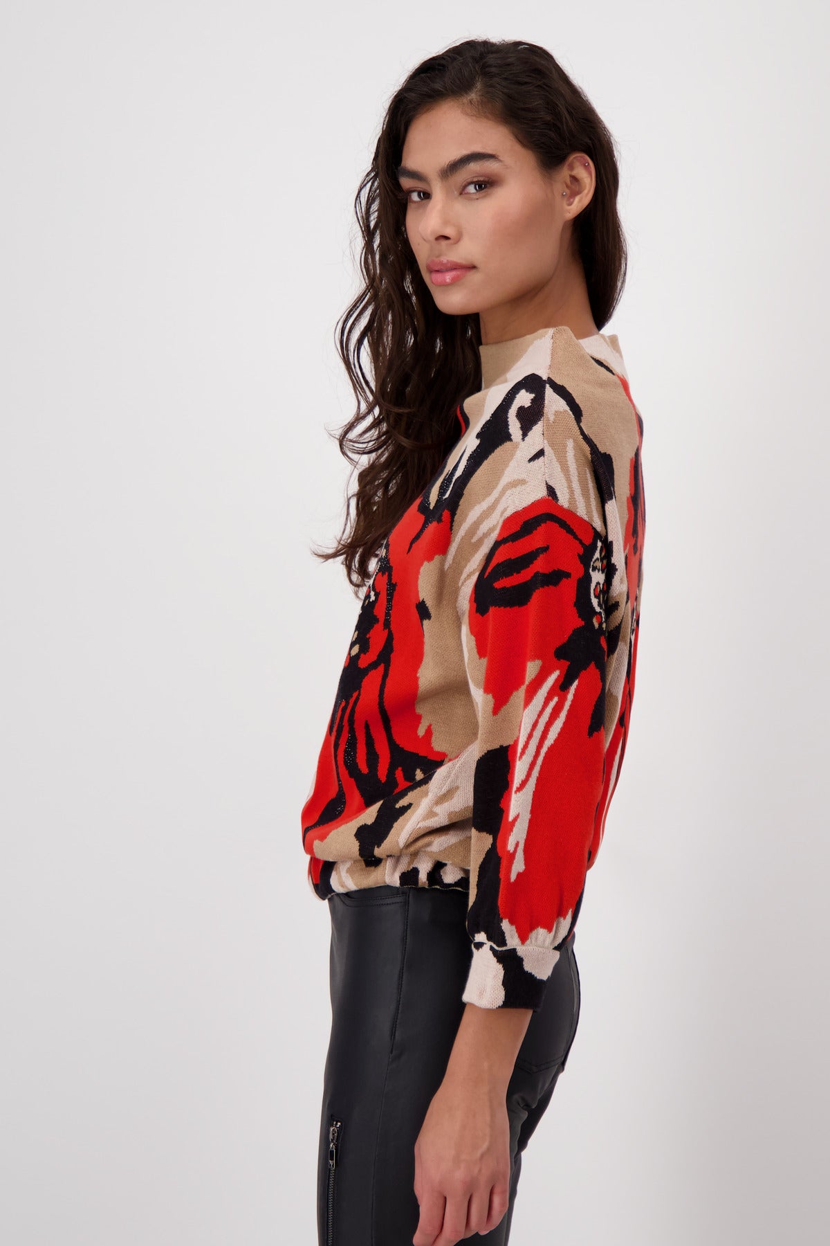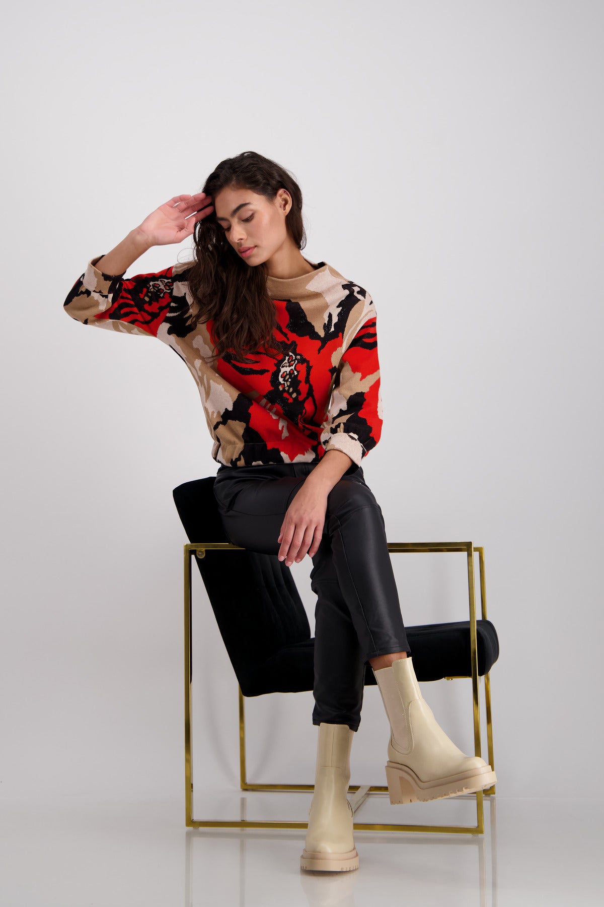 Der angenehm zu tragende Baumwoll Pullover überzeugt mit schönem Jacquard Stoff im Blumenmuster. Das Blumenmuster wird von funkelnden Strasssteinen geschmückt.100% Baumwolle