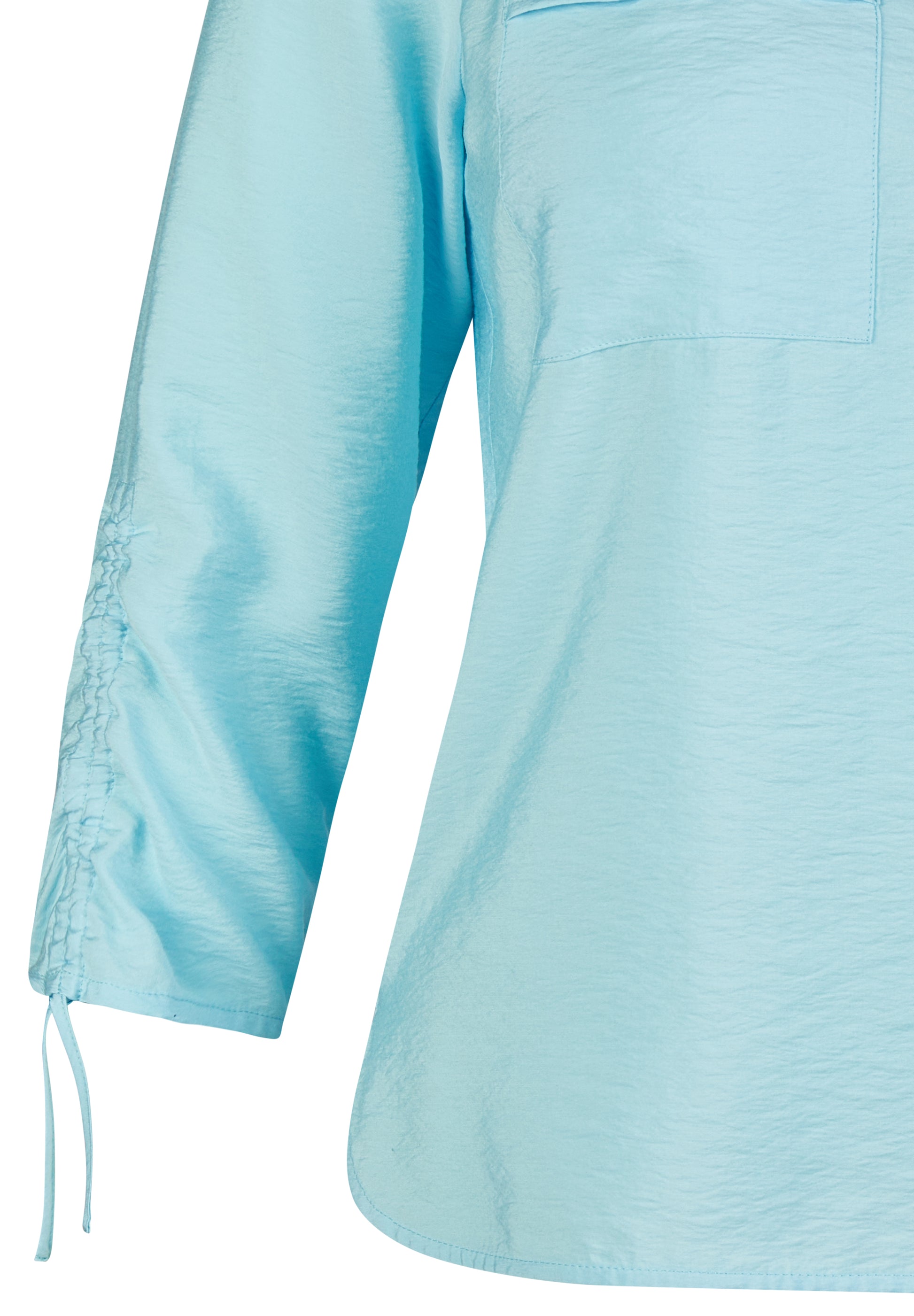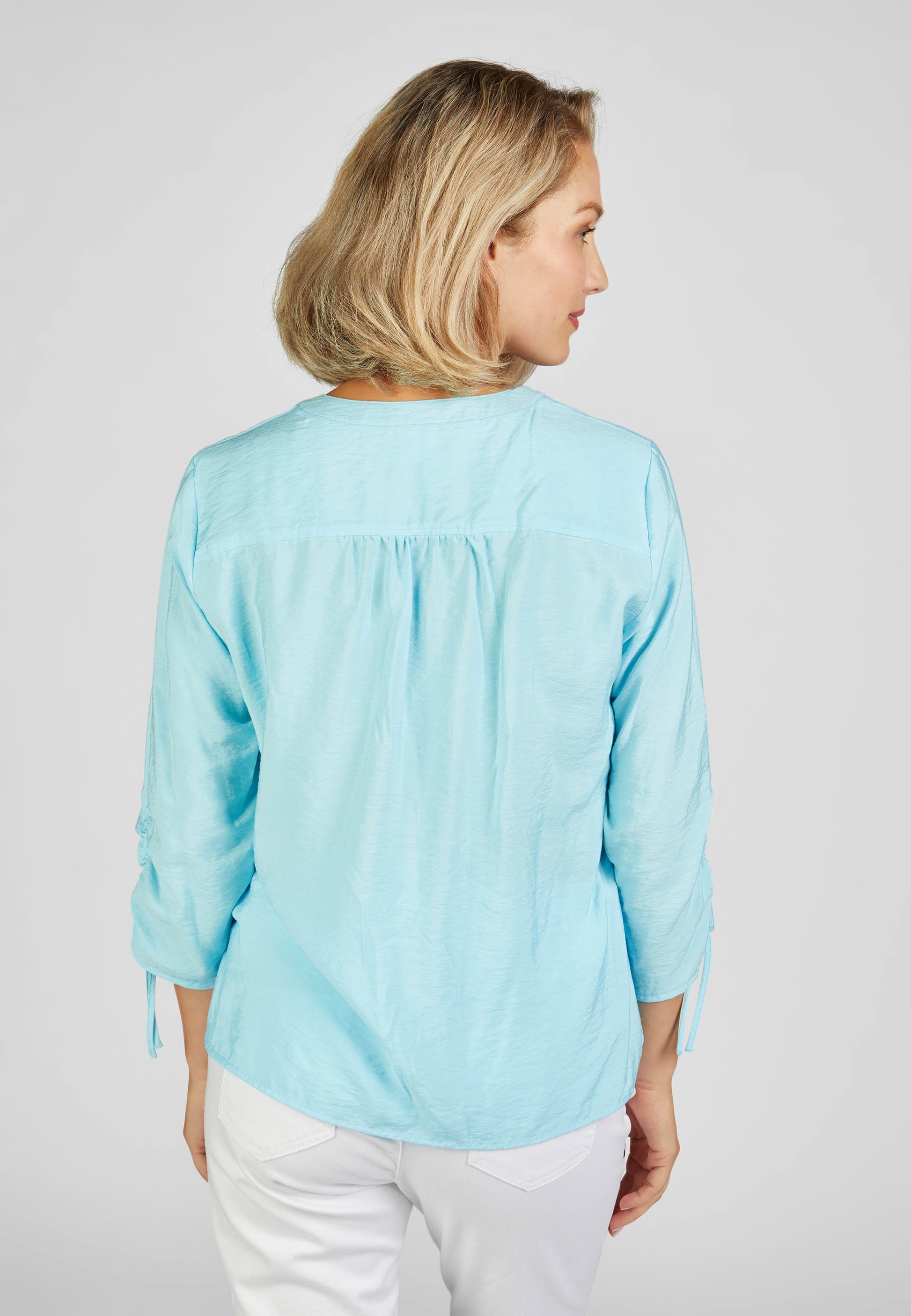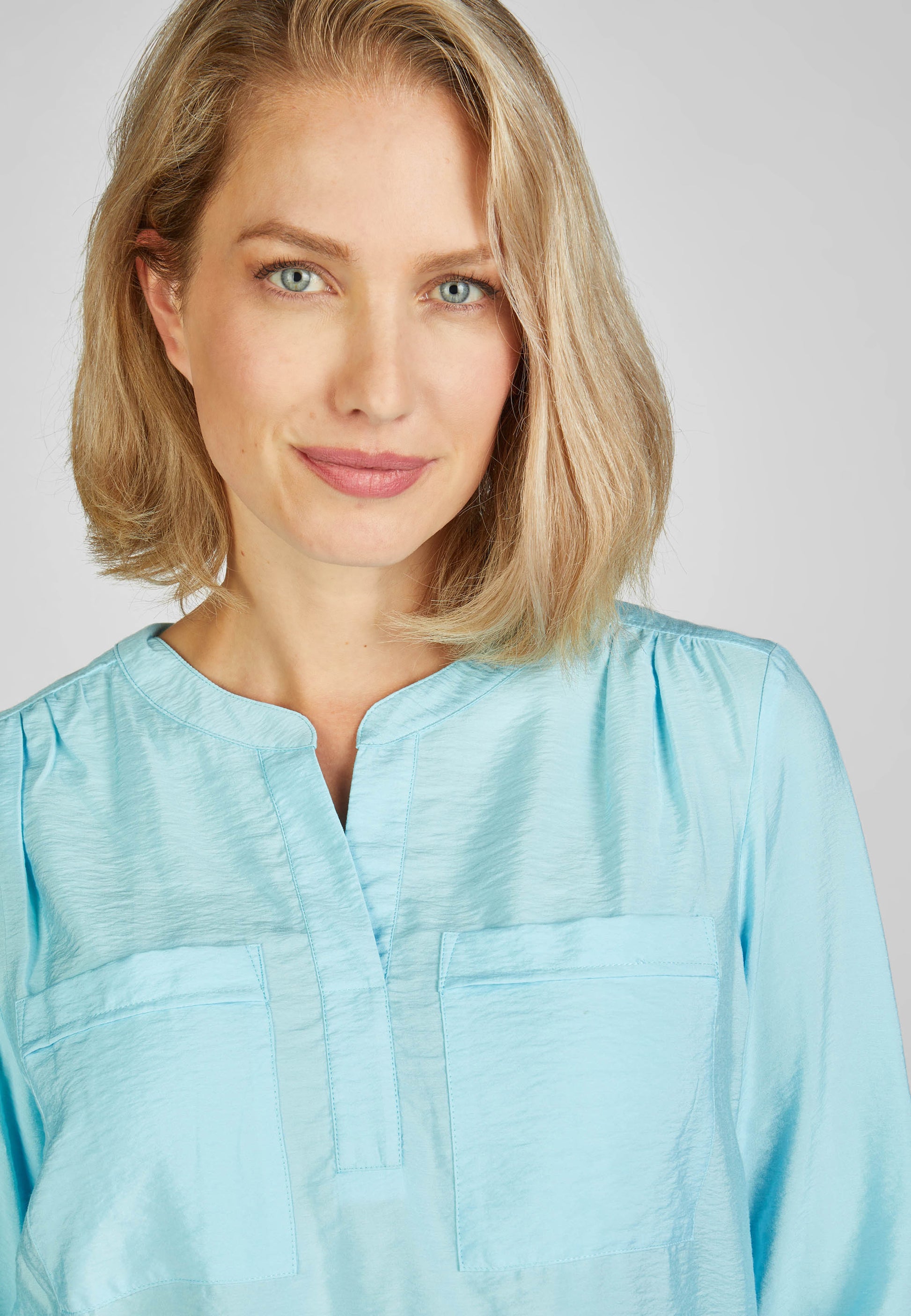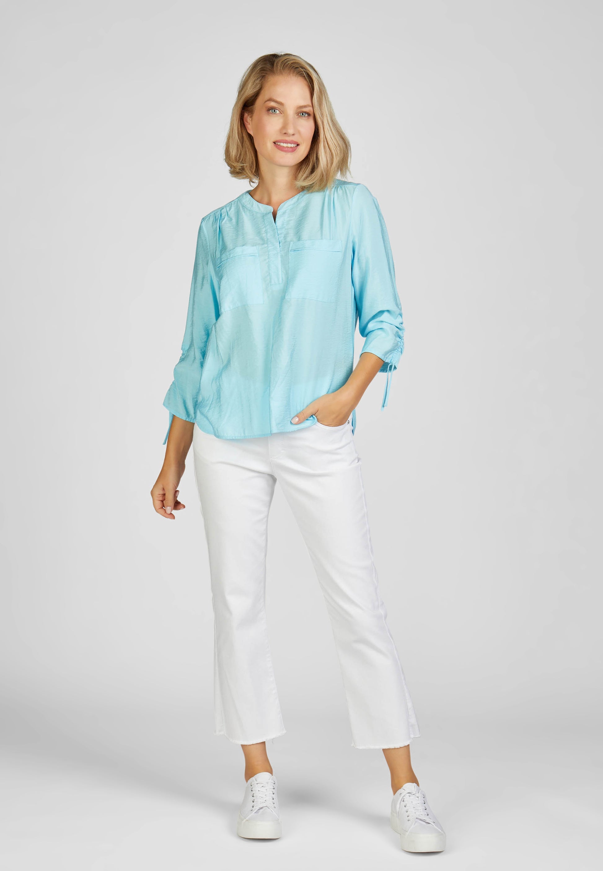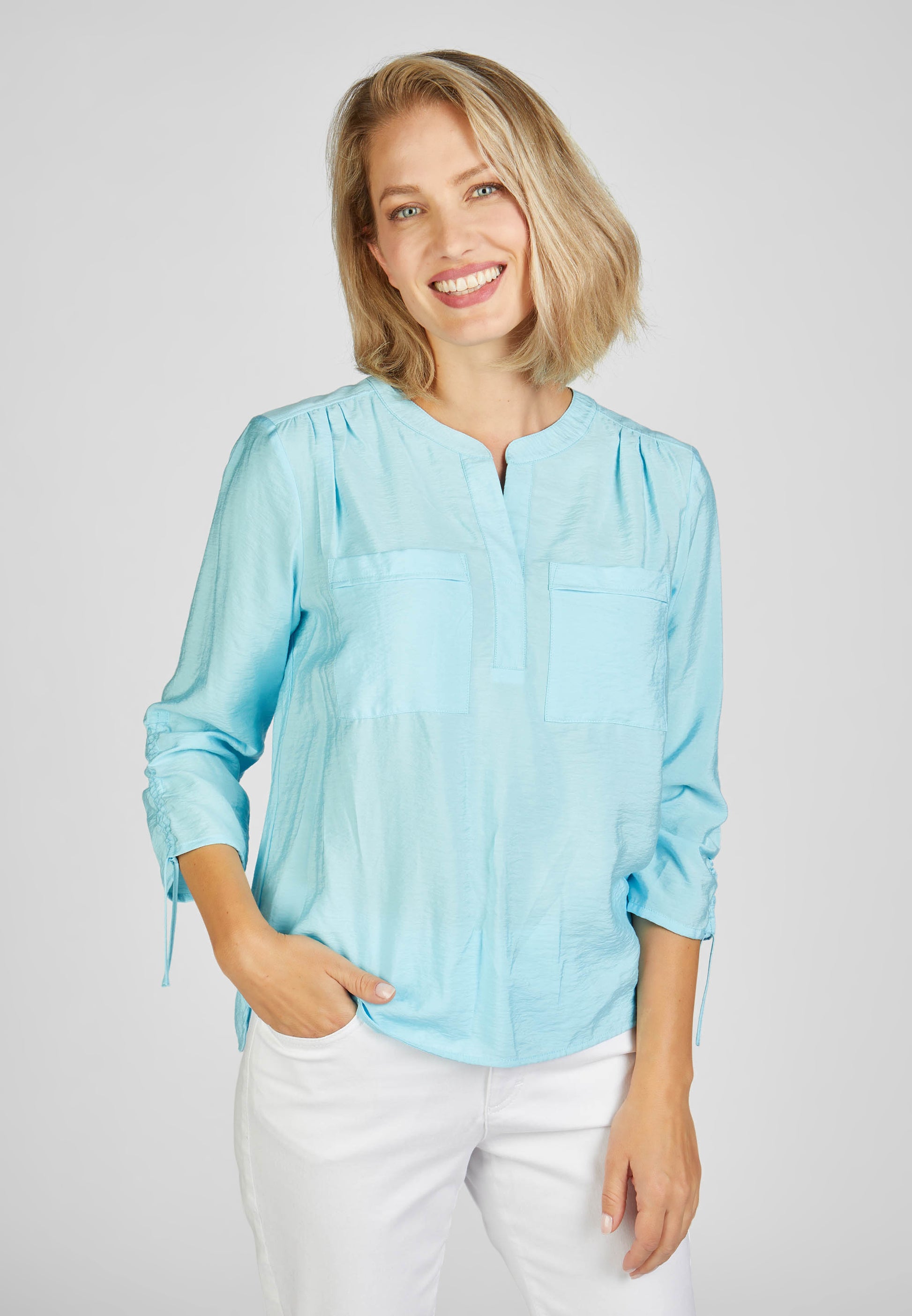 Voller Raffinesse ist diese Bluse mit verspielten Details wie aufgesetzen Brusttaschen und Raffungen mit Bindebändern an den Ärmeln. Einen schönen Rücken zaubert der Faltenwurf auf der Rückseite. Zur Geltung kommt die Bluse am besten mit einer weißen Hose und Sandaletten für einen femininen Style.85 % Viskose, 15 % Polyamid