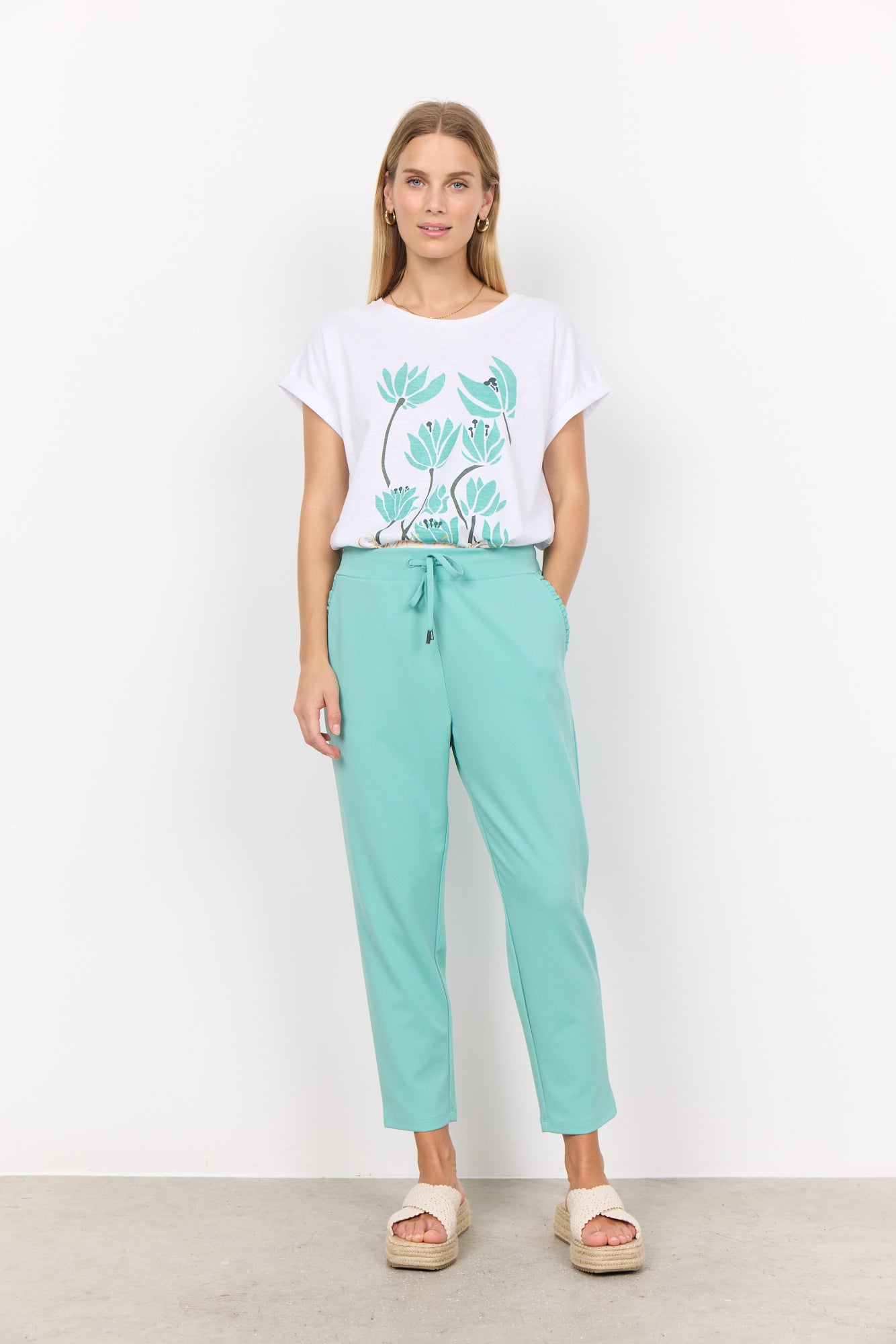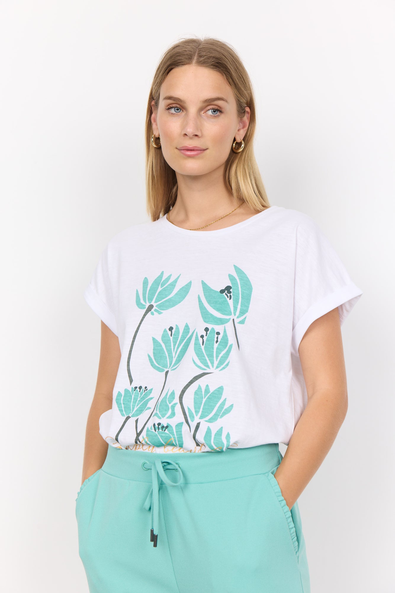 SC-Babette fp 65 ist ein feminines T-Shirt aus 100% Bio-Baumwolle. Das T-Shirt hat einen Rundhalsausschnitt, kurze Ärmel, eine lockere Passform und einen schönen Druck auf der Vorderseite. Kombiniere dieses schöne T-Shirt mit einer lockeren Jeans und einer Strickjacke für einen bequemen Alltagslook.100 % Baumwolle