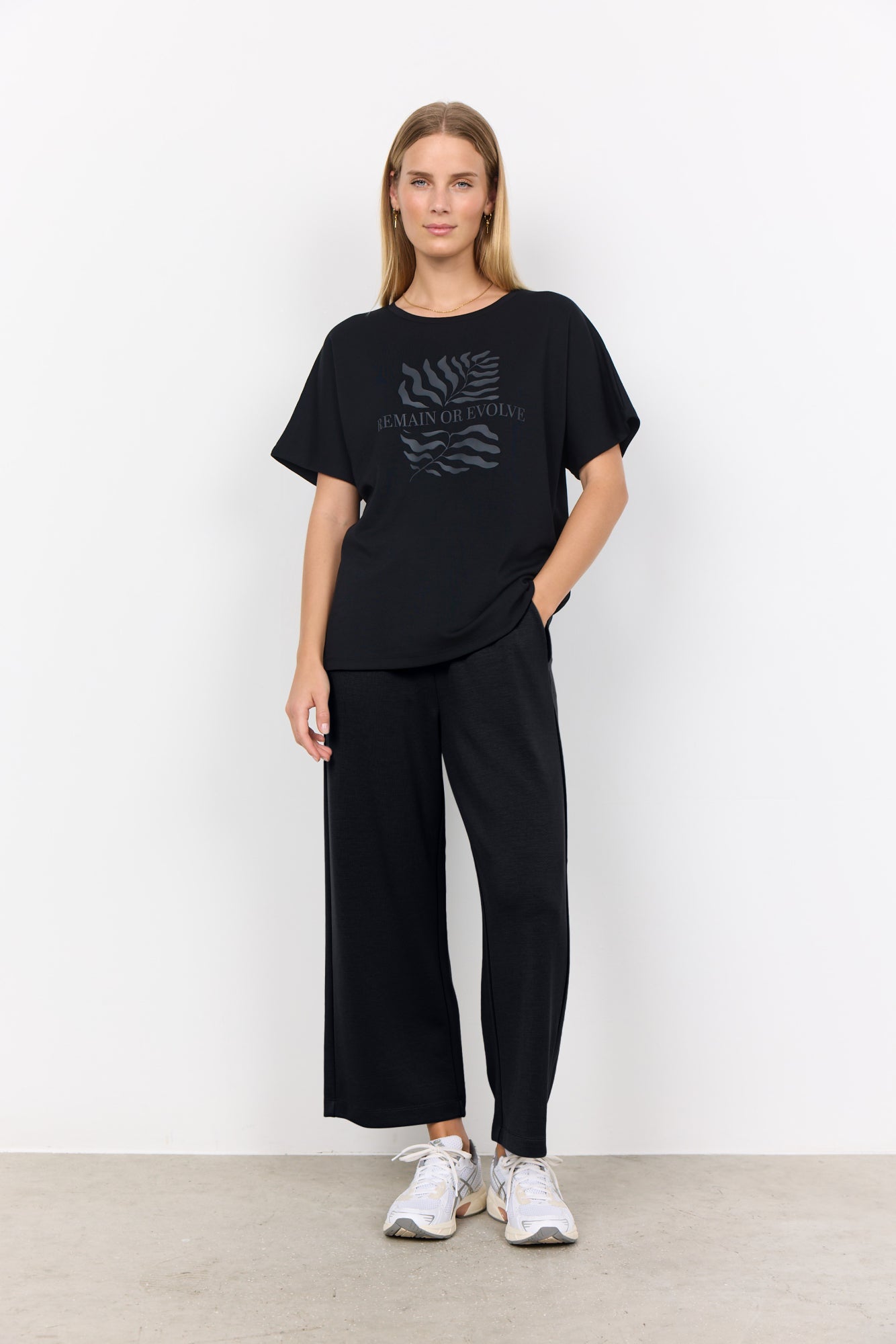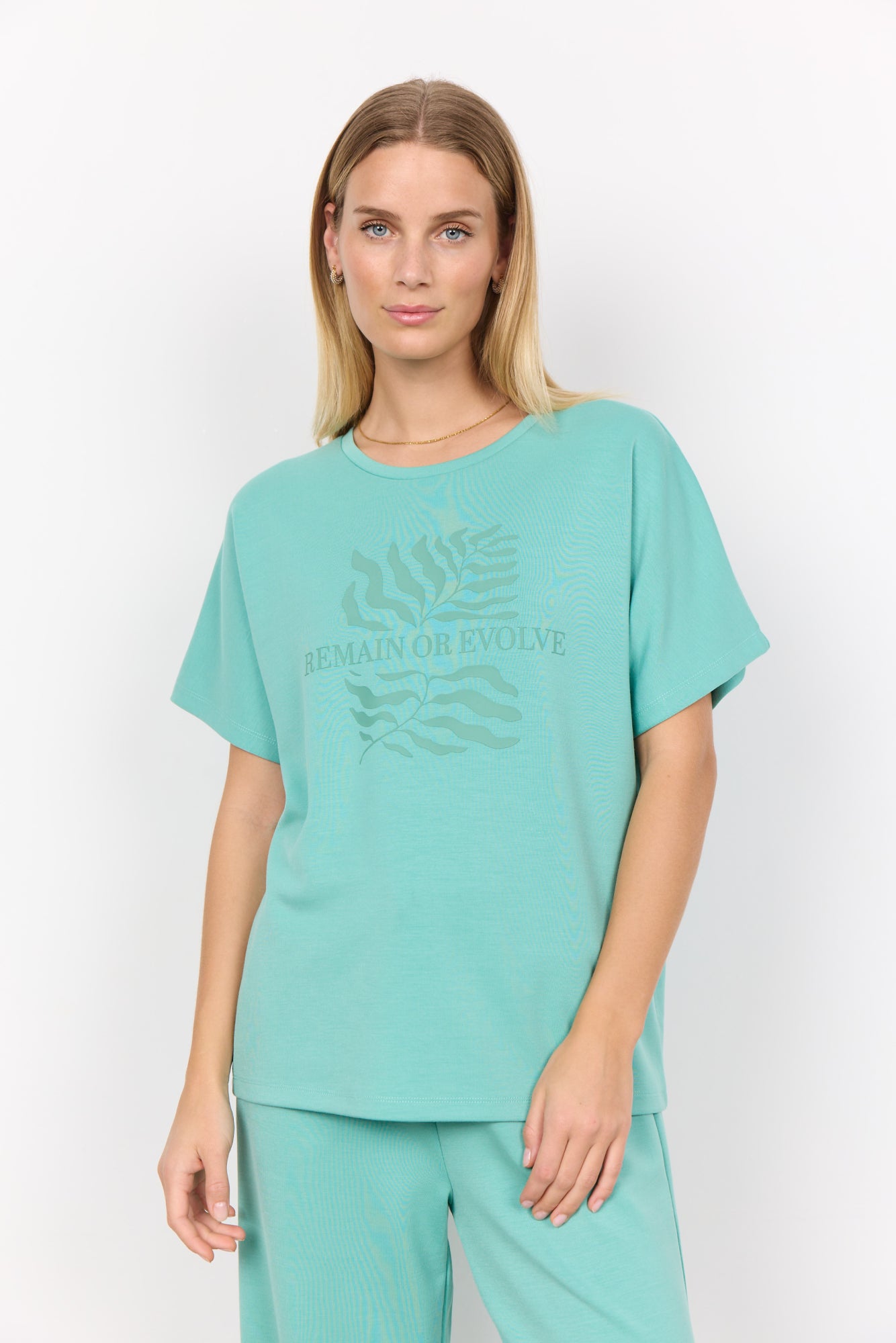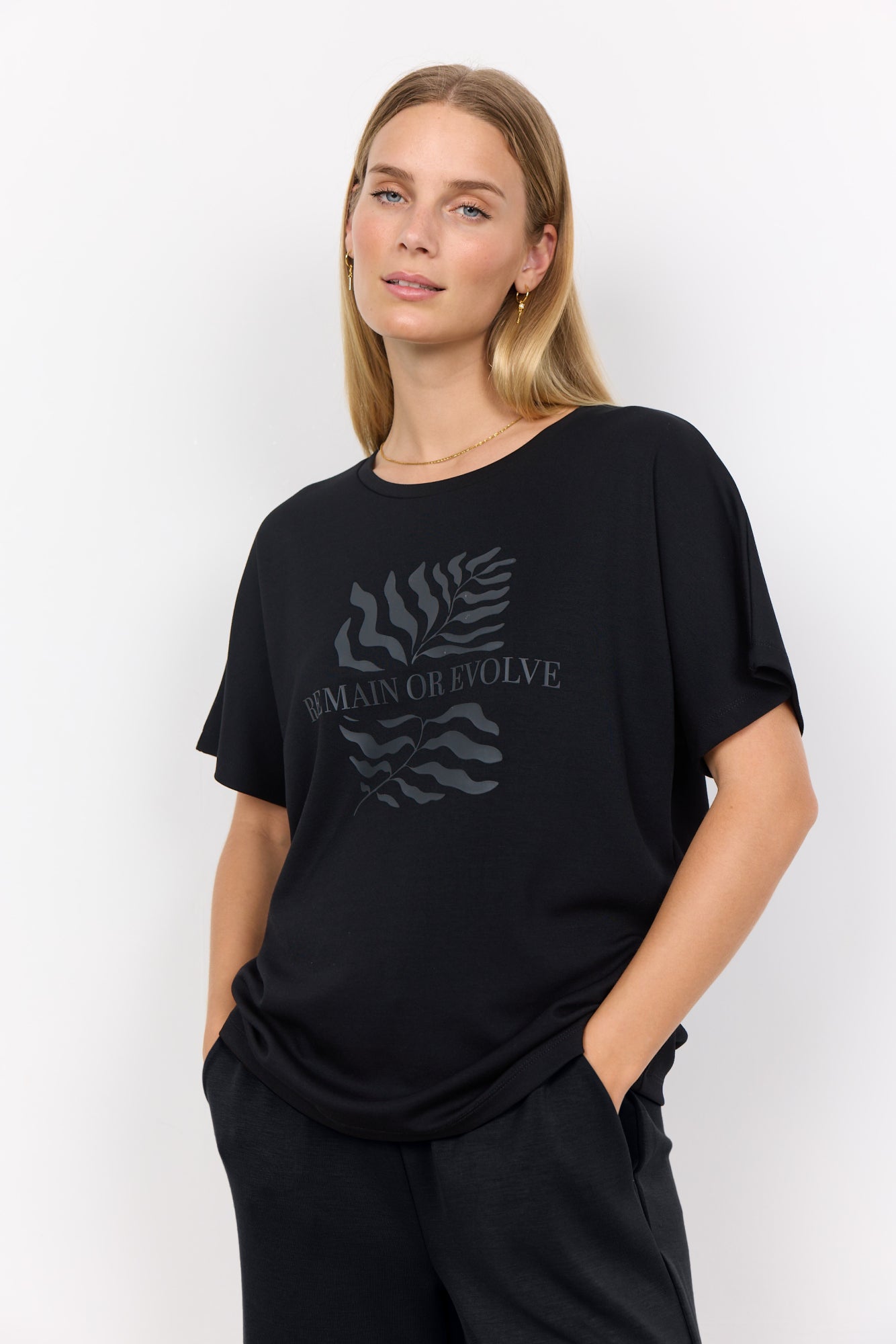 SC-Banu 176 ist ein übergroßes T-Shirt aus einer schönen Mischung aus Modal, Polyester und Elastan. Das T-Shirt hat einen Rundhalsausschnitt, kurze Ärmel, eine lockere Passform und Drucke auf der Vorderseite. Kombiniere dieses schöne T-Shirt mit einem langen Jeansrock und ein paar Loafers für einen mühelosen Look.48 % Modal, 48 % Polyester, 4 % Elasthan