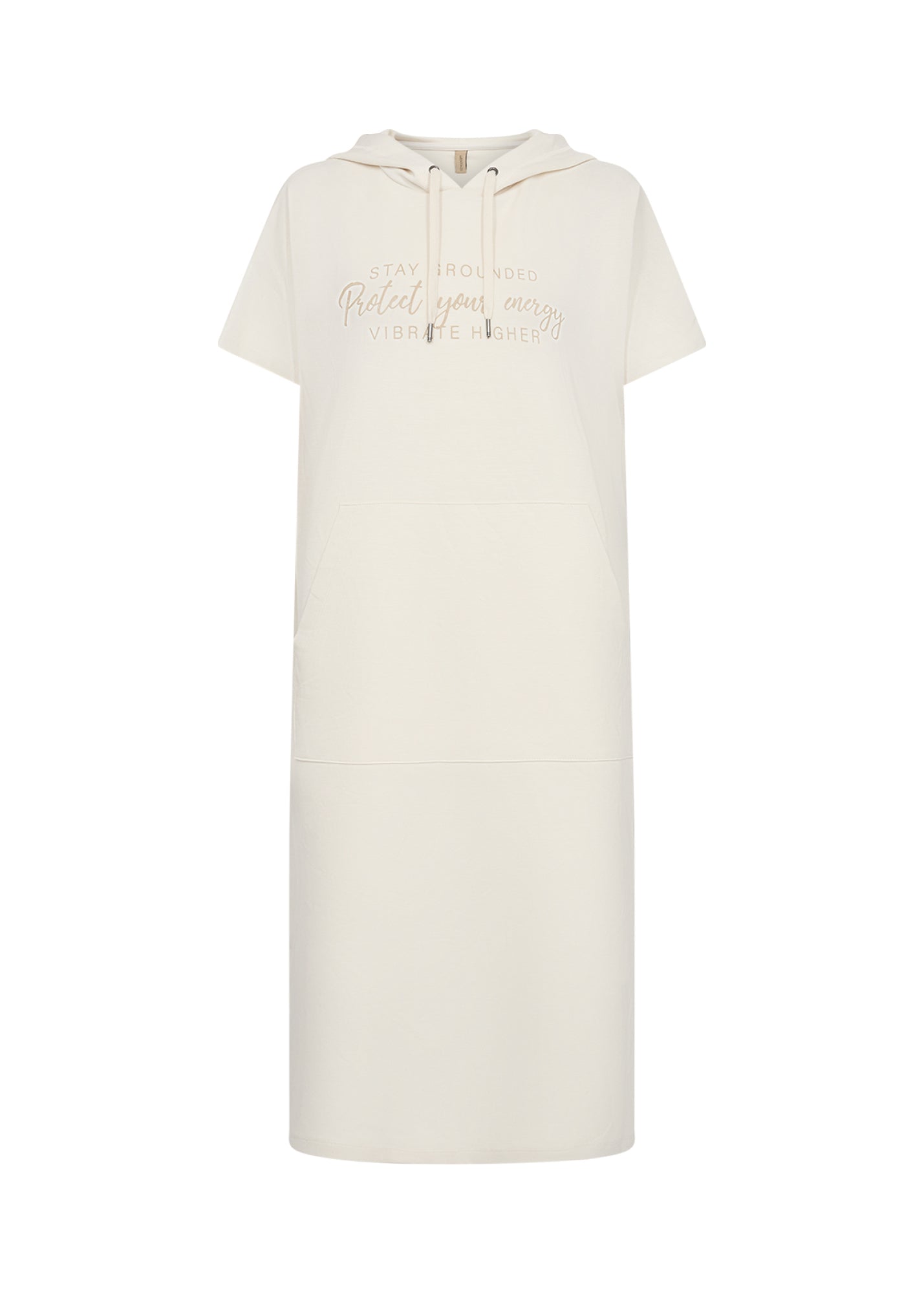 SC-Banu 178 ist ein bequemes Sweat-Kleid aus einer kuscheligen Mischung aus Modal, Polyester und Elastan. Das Kleid hat eine Kapuze mit Kordelzug, kurze Ärmel, ein Zitat auf der Brust und eine bequeme Passform. Style dieses Kleid über einer Jeans und Sneakers für einen bequemen Look.48 % Modal, 48 % Polyester, 4 % Elasthan