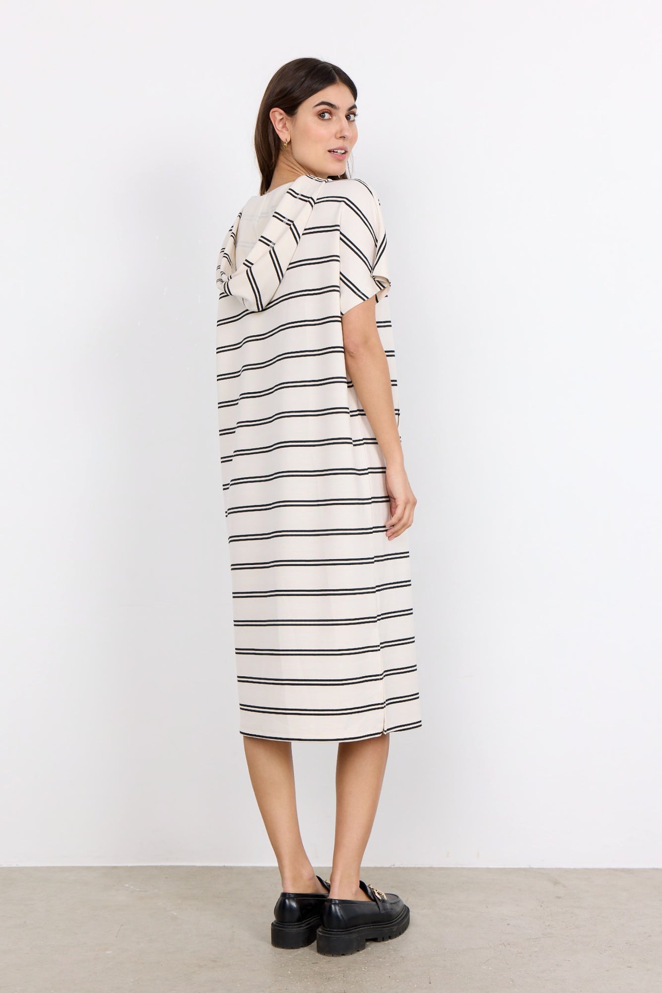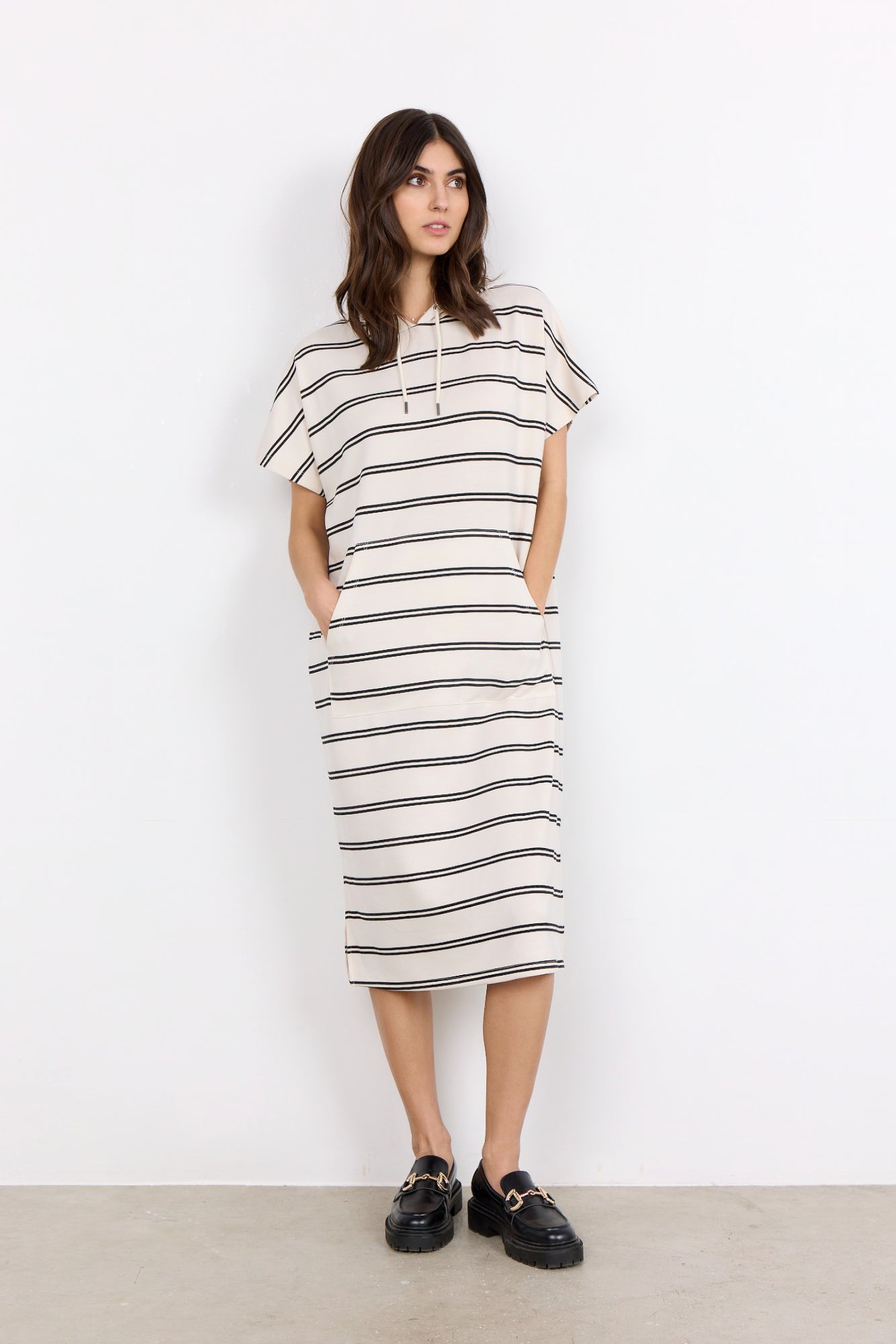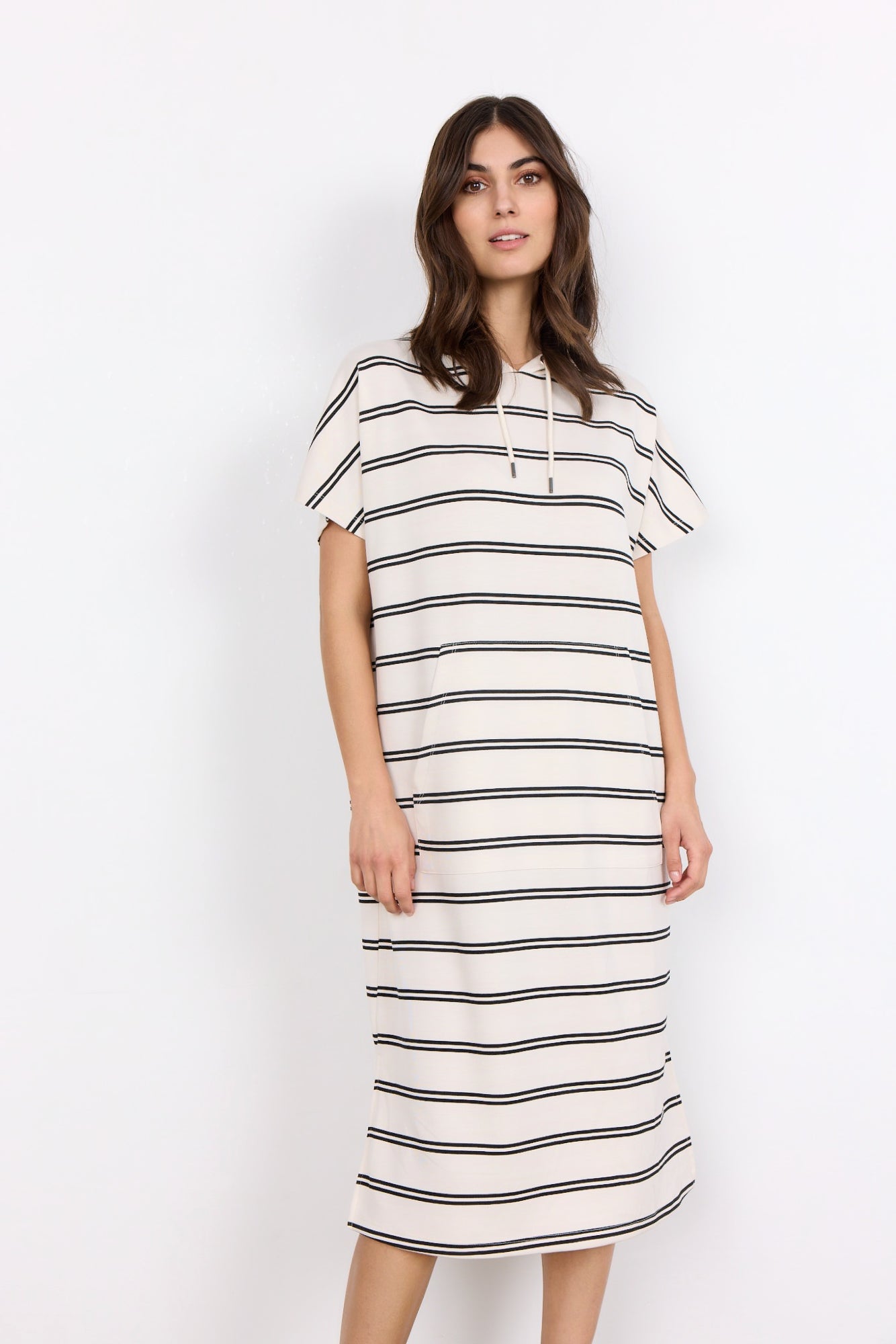 SC-Barni 19 ist ein lässiges und bequemes Kleid aus einer schönen Mischung aus Modal, Polyester und Elasthan. Das Kleid hat eine Sweat-Qualität, kurze Ärmel, eine Kapuze und ein gestreiftes Muster. Dieses bequeme Kleid ist perfekt für deinen Alltags Look.48% Modal, 48% Polyester, 4% Elasthan