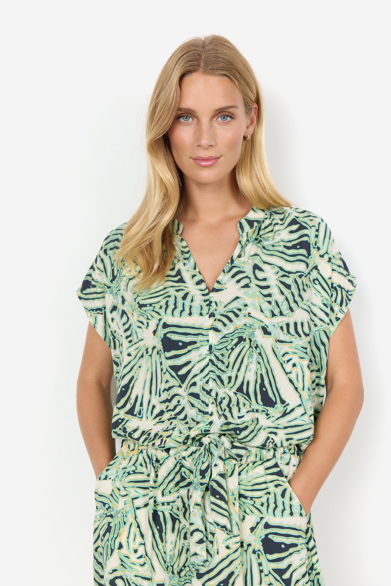 SC-Ena 3 ist eine feminine Bluse aus 100% LENZING™ ECOVERO™ Viskose. Die Bluse hat einen geteilten Ausschnitt, eine Knopfleiste, kurze Ärmel, eine lockere Passform und einen lebendigen Druck. Kombiniere diese farbenfrohe Bluse mit einer klassischen Hose und Sneakers für einen schönen Alltagslook.