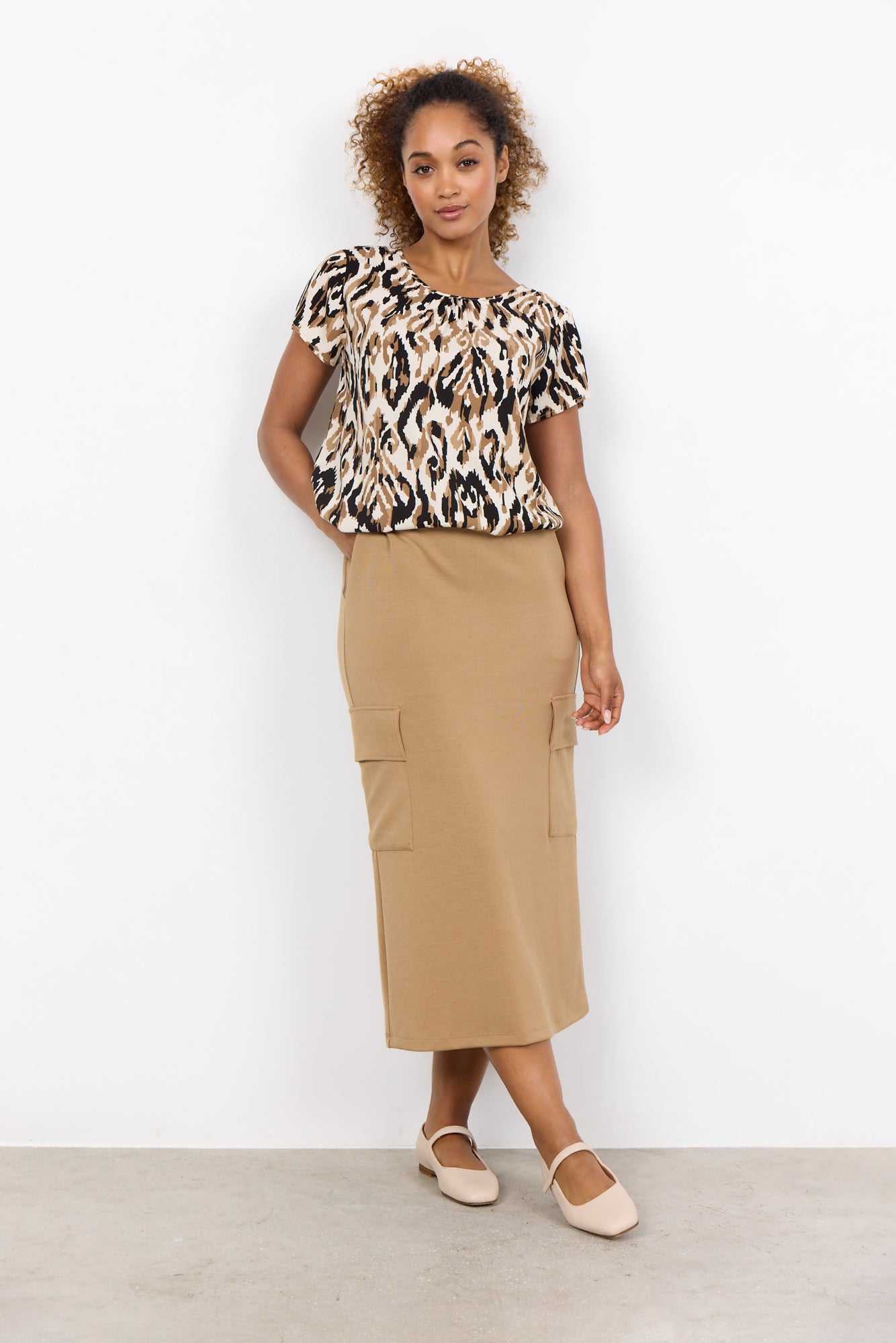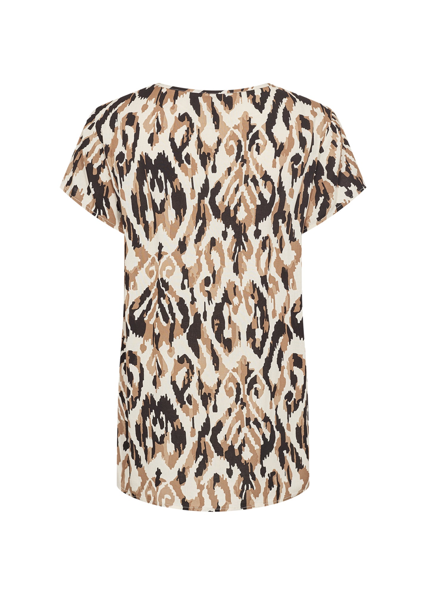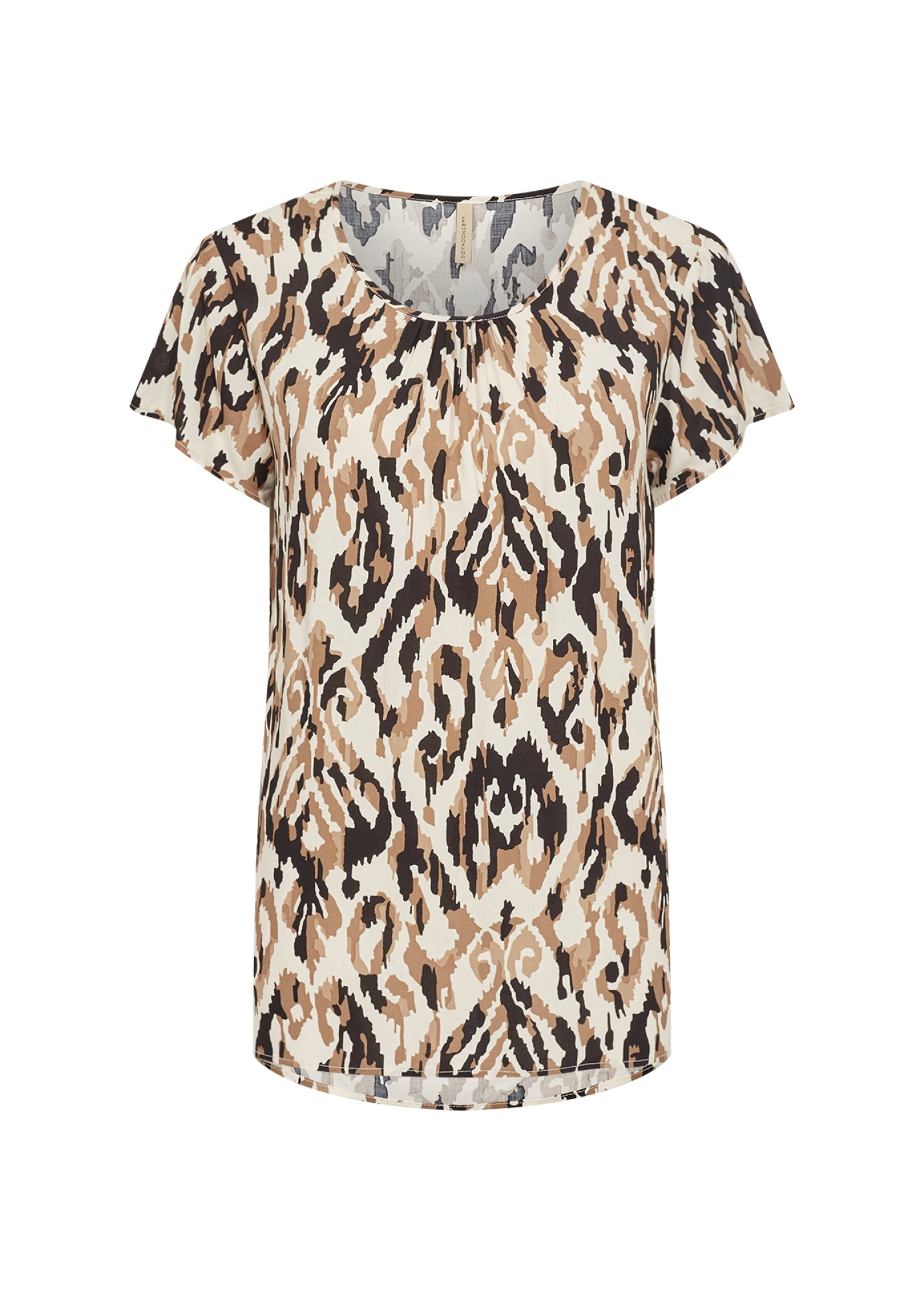 Das SC-FANG 1 T-Shirt ist aus weicher, atmungsaktiver 100% ECOVERO Viskose gefertigt. Das Oberteil hat eine lockere Passform, kurze Ärmel und einen Rundhalsausschnitt mit gerüschten Details, die durch einen auffälligen, von Tieren inspirierten Druck ergänzt werden. Kombinieren Sie es mit einer taillierten Hose oder einem fließenden Rock für einen eleganten Look, der sich für verschiedene Anlässe eignet.