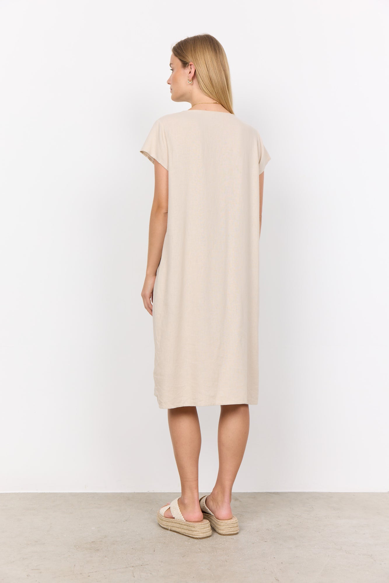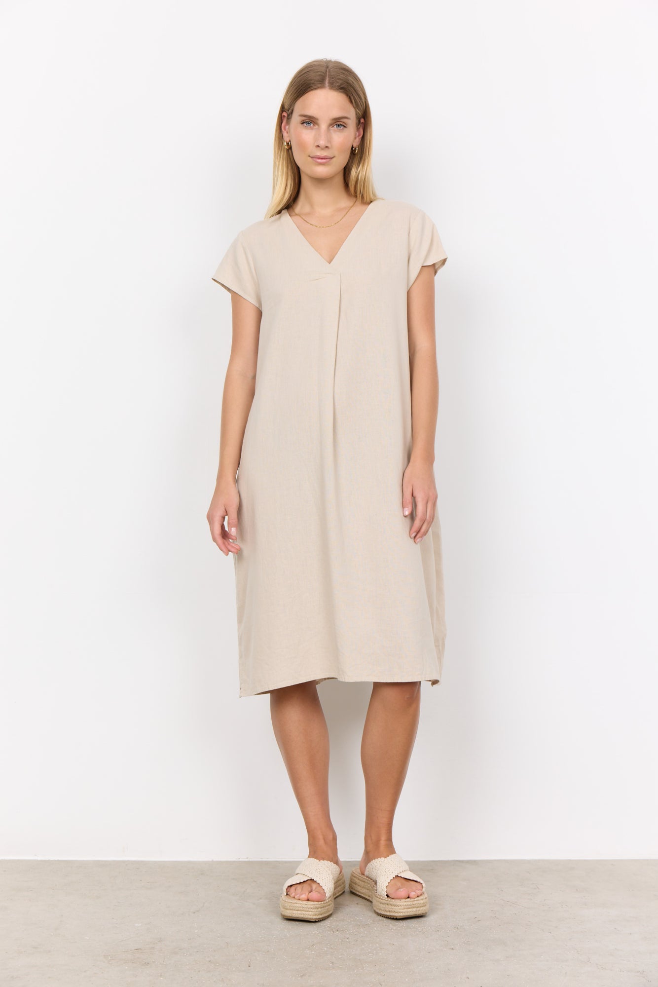 SC-Ina 59 ist ein Basic-Kleid aus einer schönen Mischung aus Leinen und Viskose. Das Kleid hat einen schönen V-Ausschnitt, einen Schlitz auf der Vorderseite, kurze Ärmel und eine lockere Passform. Trage es über einem langärmeligen T-Shirt und einer Jeans für einen vielschichtigen Alltagslook.55 % Leinen, 45 % Viskose
