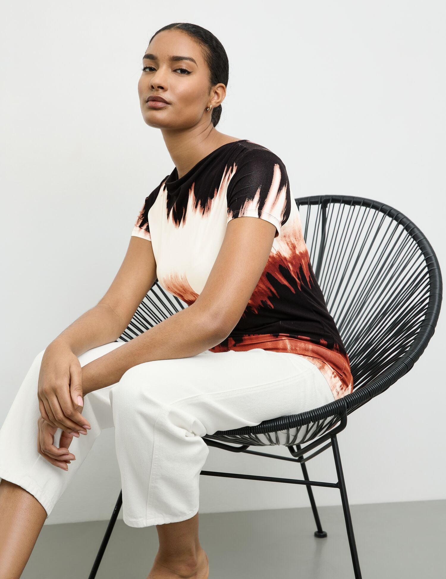 Abstrakter Print. Raffung an der linken Schulter. Mit diesem Shirt holst du dir ein Stück Kunst in deine Garderobe! Denn der abstrakte Print zieht alle Blicke auf sich. Die Kräuselung an der linken Schulter und der softe Jersey sorgen für einen wunderschönen Fall und verleihen deinem Look eine besondere Note. Das Beste daran? Es ist auch noch nachhaltig produziert, was dir ein gutes Gewissen beim Tragen schenkt.95 % Viskose, 5 % Elasthan