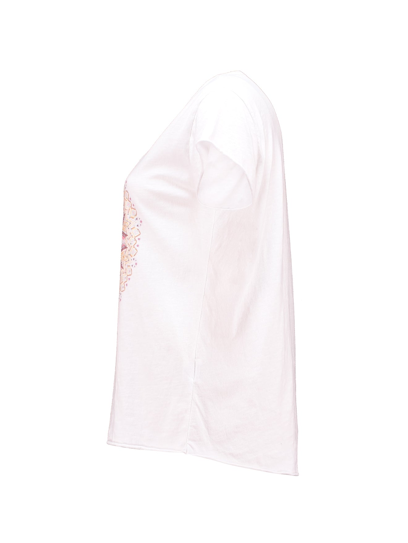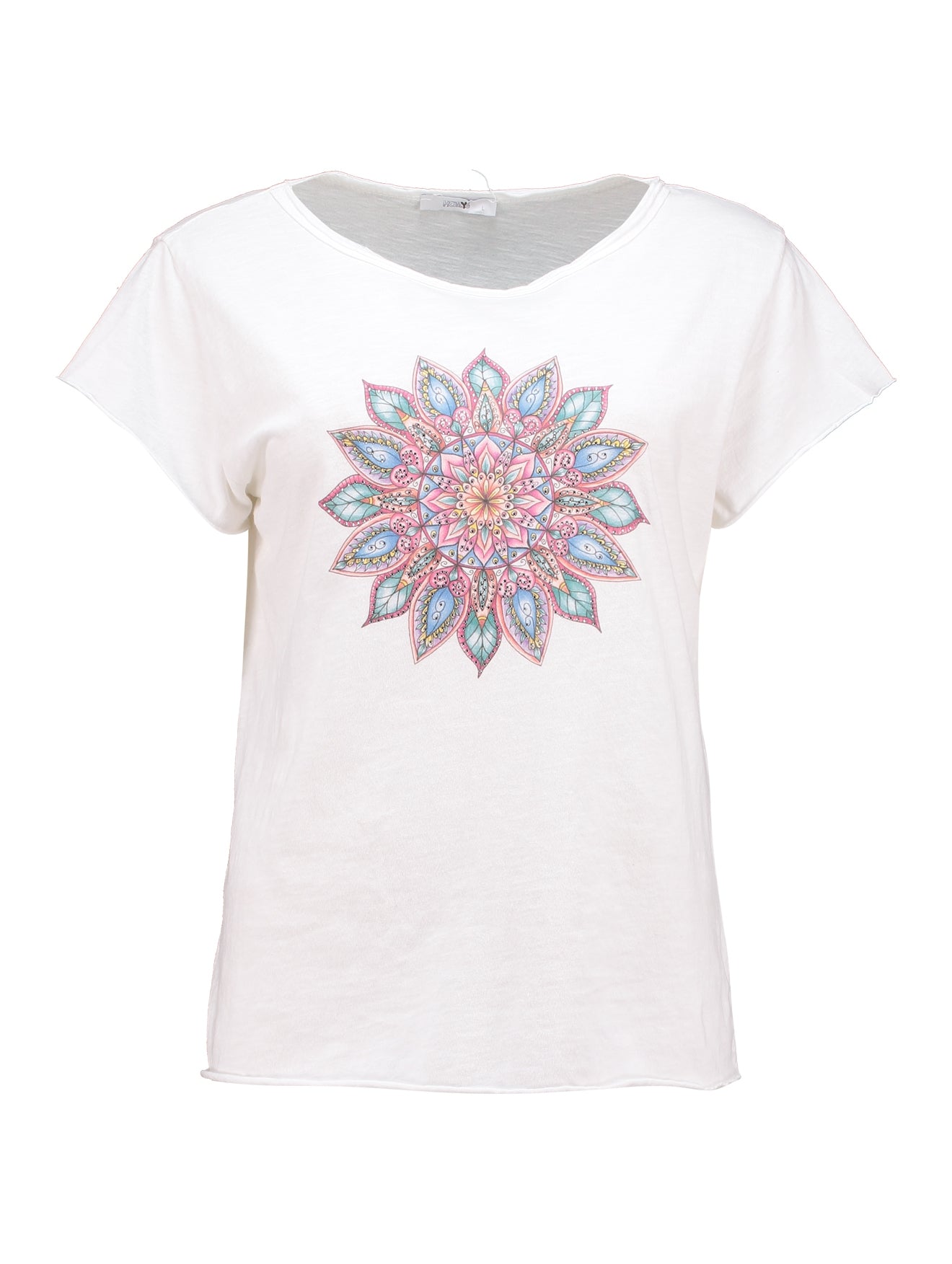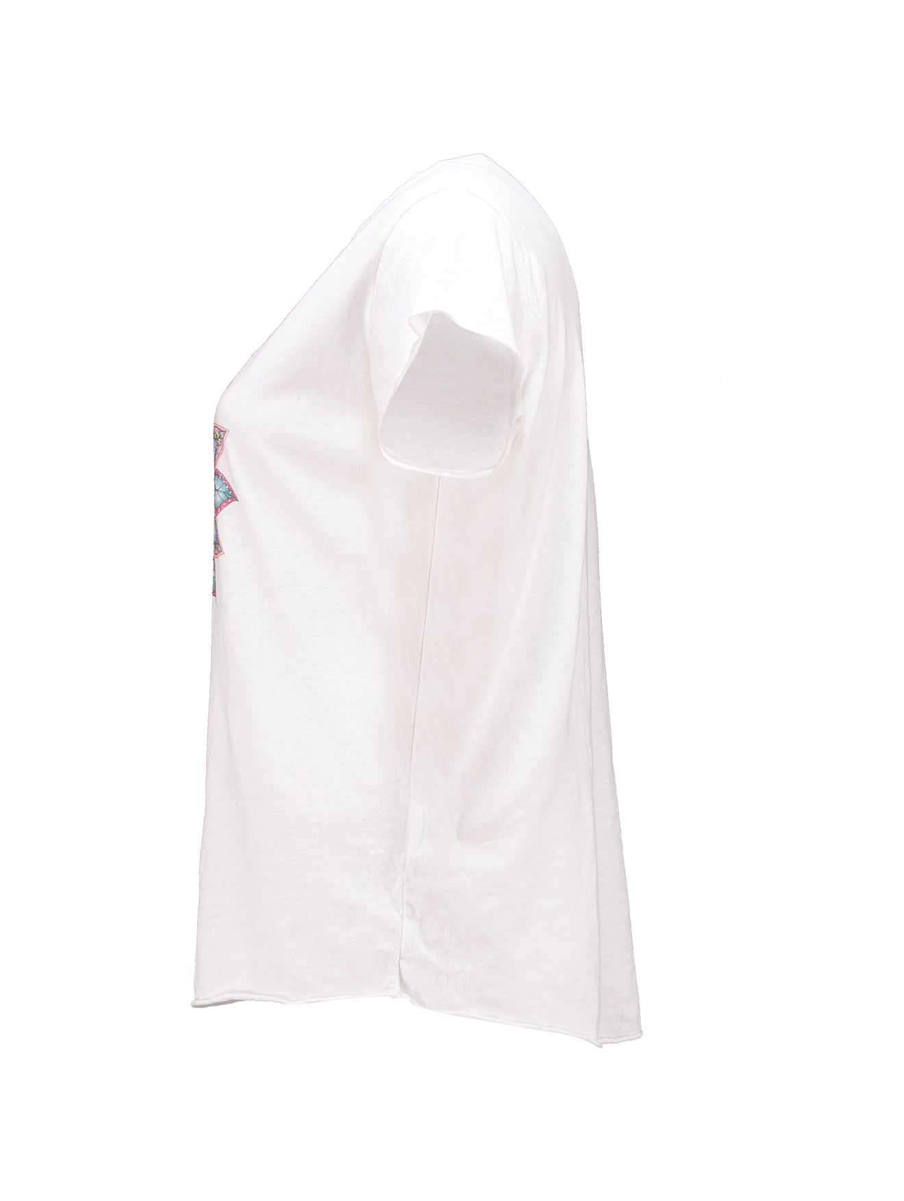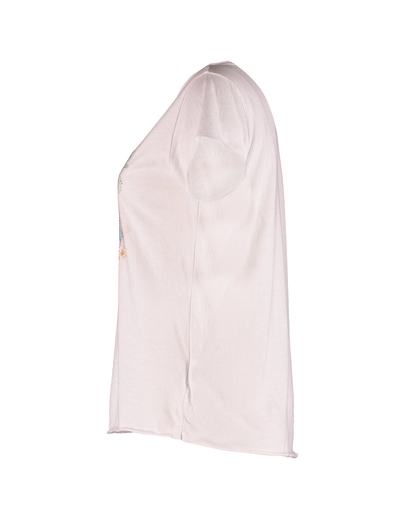 T-Shirt mit Moped-Print und Schmucksteinen. Kurze Ärmel und Rundhalsausschnitt.100 % Baumwolle