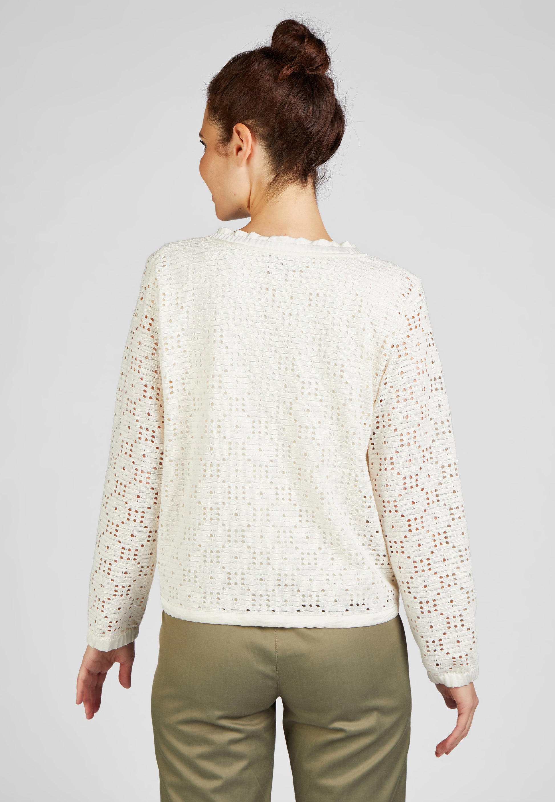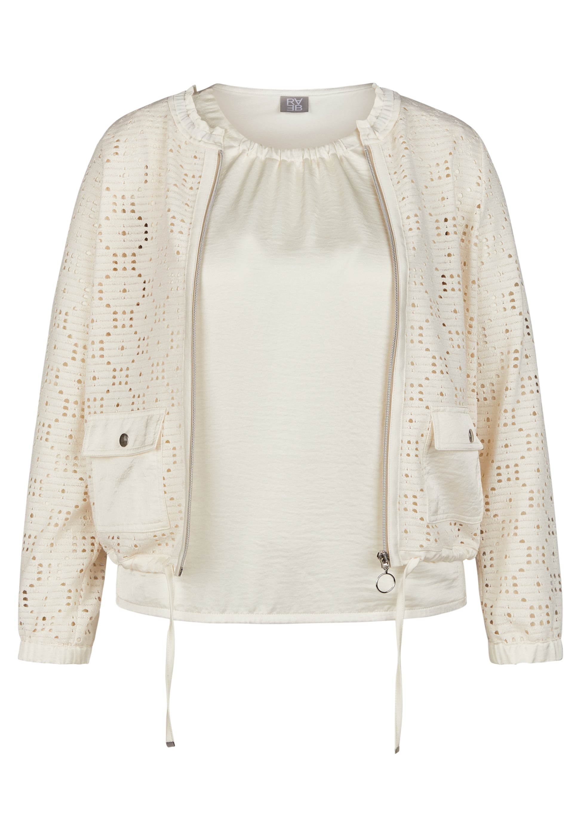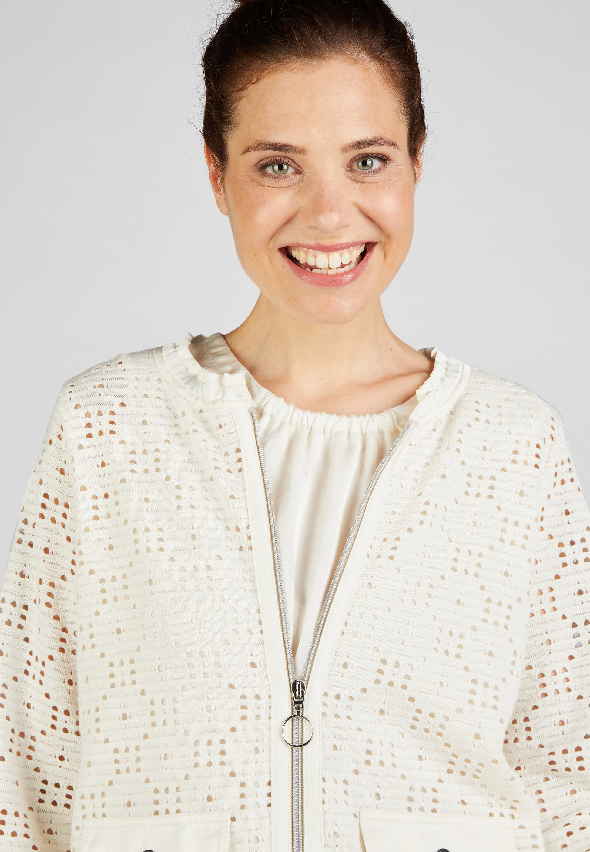 Dieses Twin-Set besteht aus einem Top aus Viskose-Elasthan-Mix und einer Jacke aus Baumwoll-Mix. Das Top ist an Kragen und Saum gerafft. Die Raffungen finden sich in Satin-Optik an der Jacke wieder. Schließen lässt sich die Jacke mittels Reißverschluss. Das Lochmuster macht die Jacke zu einem ganz besonderen Teil, das farblich perfekt auf das Top abgestimmt ist. Die seitlichen Taschen nehmen Kleinigkeiten auf. Kombinieren Sie das Twin-Set mit einer weißen Caprihose und Sneakern.47 % Baumwolle, 47 % Polyester, 6 % Elasthan
