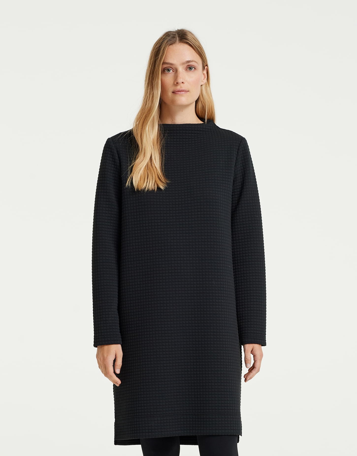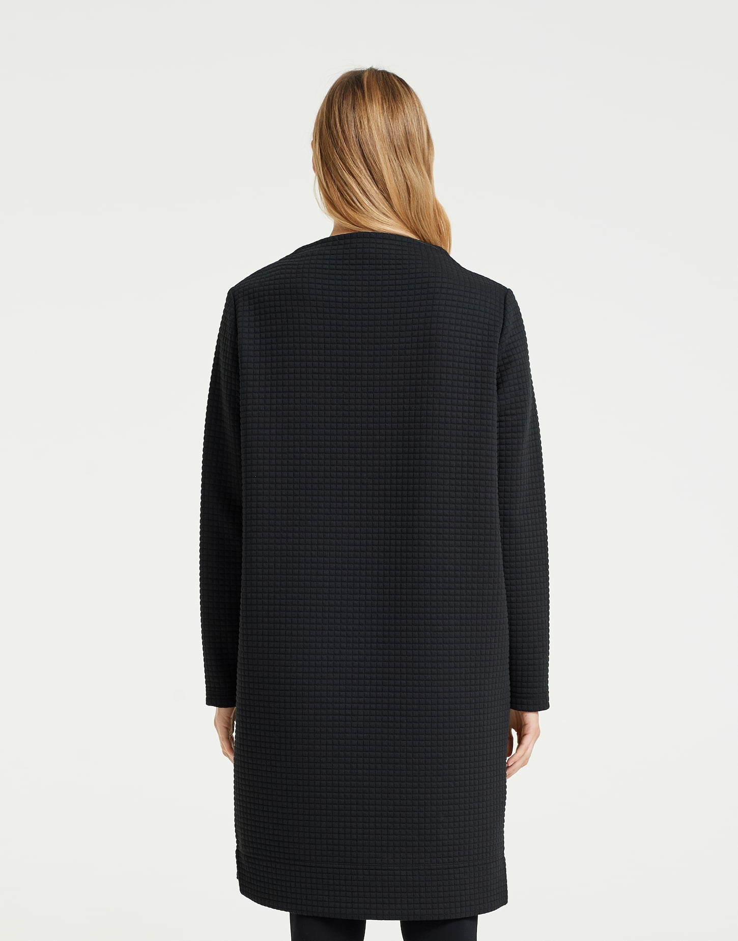 Viskose-Mix, gequiltete Jerseyware, gerade Silhouette, unten Schlitze in den Seiten, Funnelneck, Struktur wie Waben, das Model ist 176 cm groß und trägt Größe 3683% Polyester, 15% Viskose, 2% Elasthan